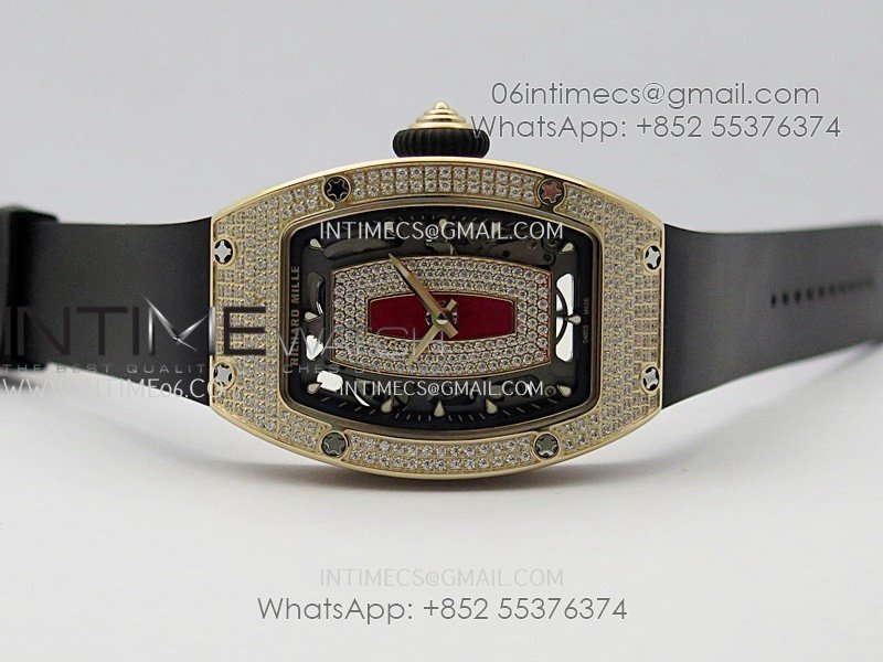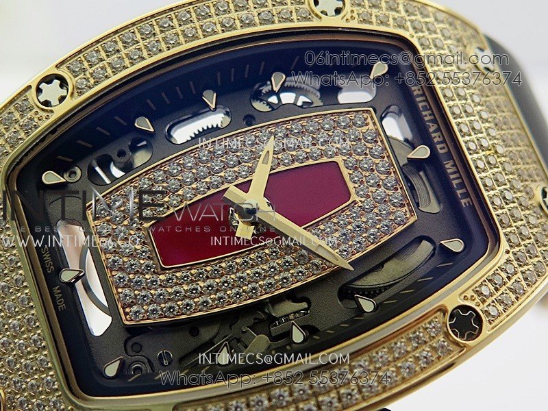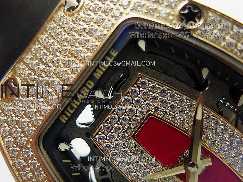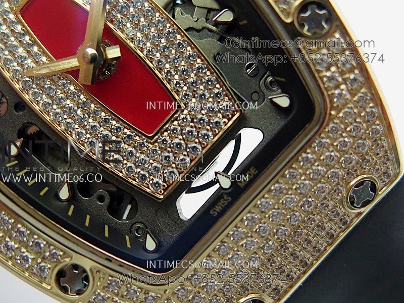 RM07 Full Paved Diamond RG ZF Best Edition Red Diamond Skeleton Dial On Black Rubber Strap Asian CRMA2 Clone