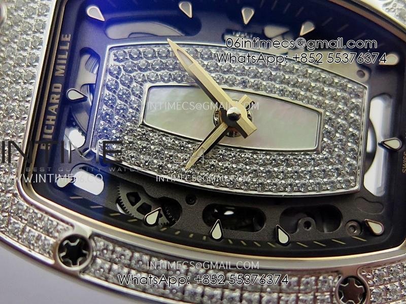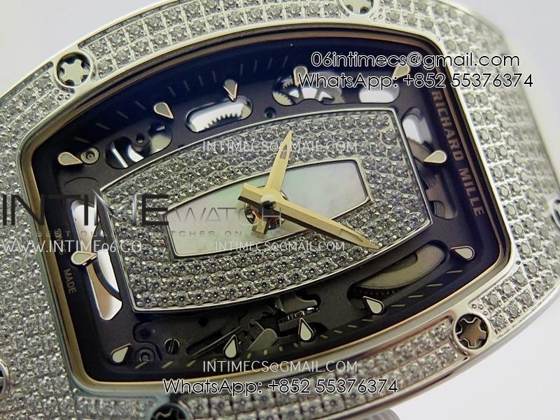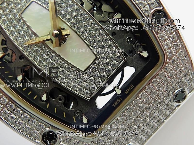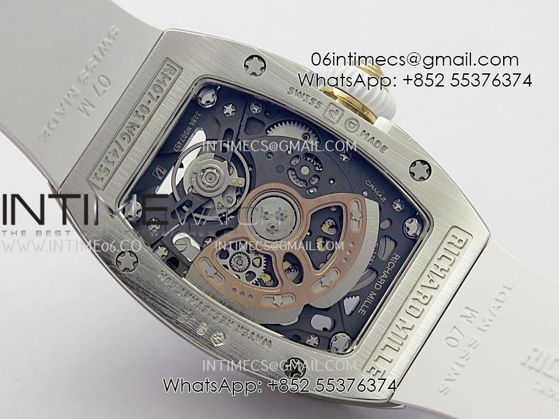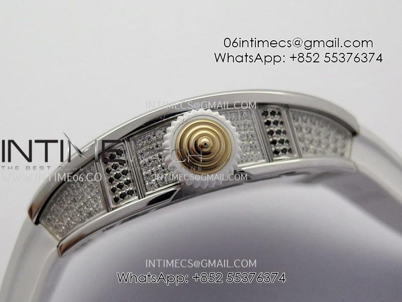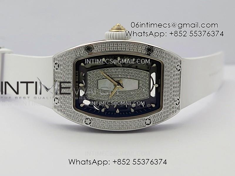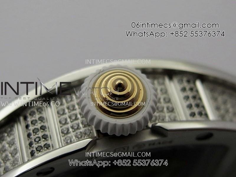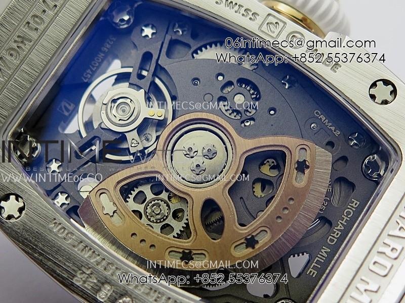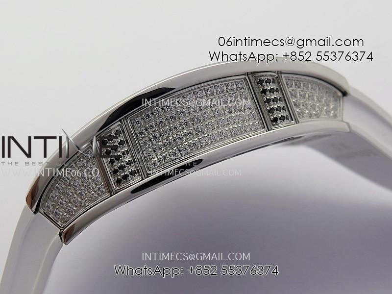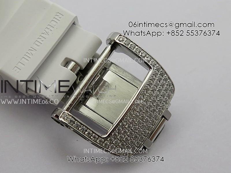 RM07 Full Paved Diamond SS ZF Best Edition White Diamond Skeleton Dial On White Rubber Strap Asian CRMA2 Clone