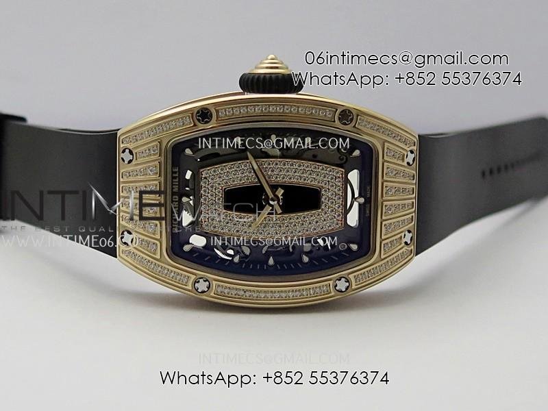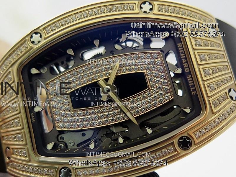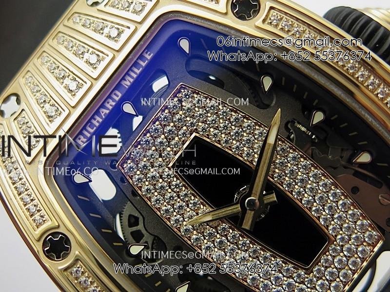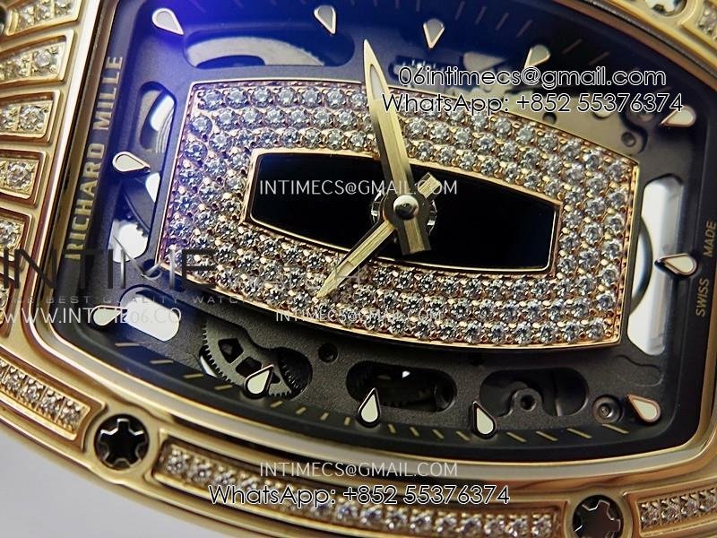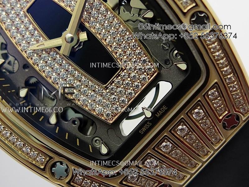 RM07 Paved Diamonds Bezel RG ZF Best Edition Diamonds Skeleton Dial On Black Rubber Strap Asian CRMA2 Clone