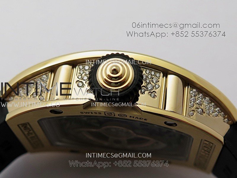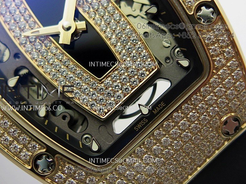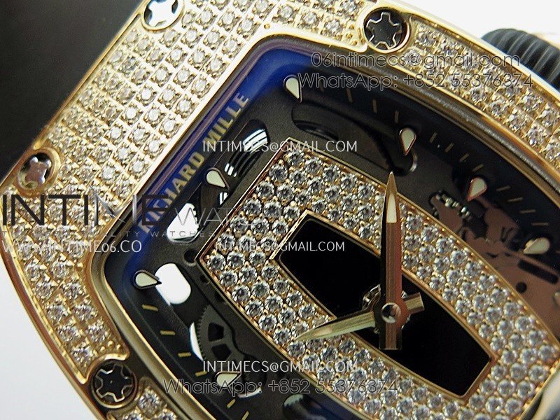 RM07 Paved Snowflake Cut Diamonds RG ZF Best Edition Black MOP Diamond Skeleton Dial On Black Rubber Strap Asian CRMA2 Clone
