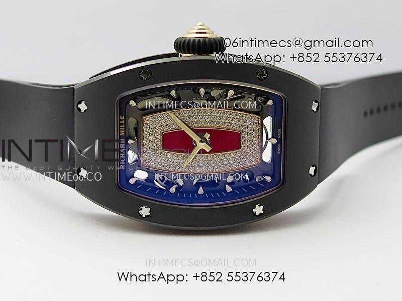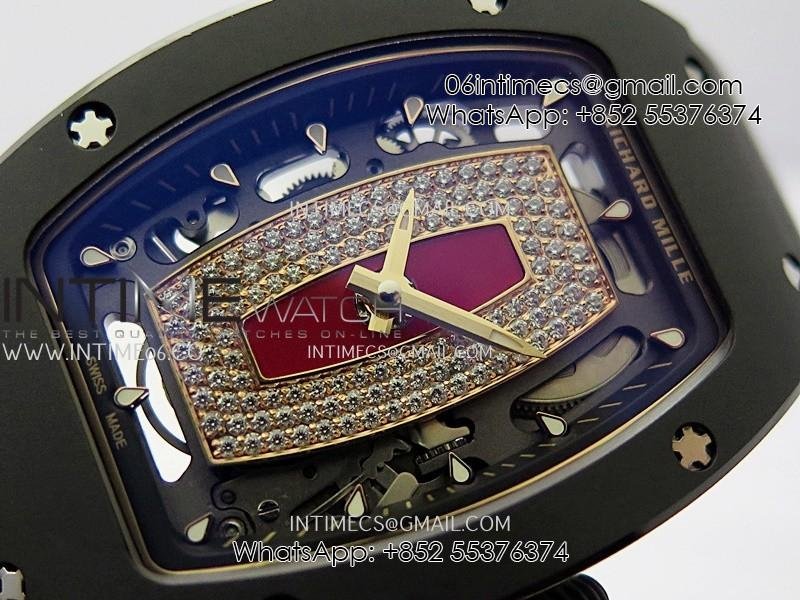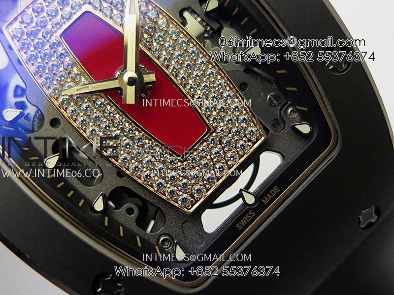 RM07 Real Black Ceramic RG ZF Best Edition Red MOP Diamond Skeleton Dial On Black Rubber Strap Asian CRMA2 Clone
