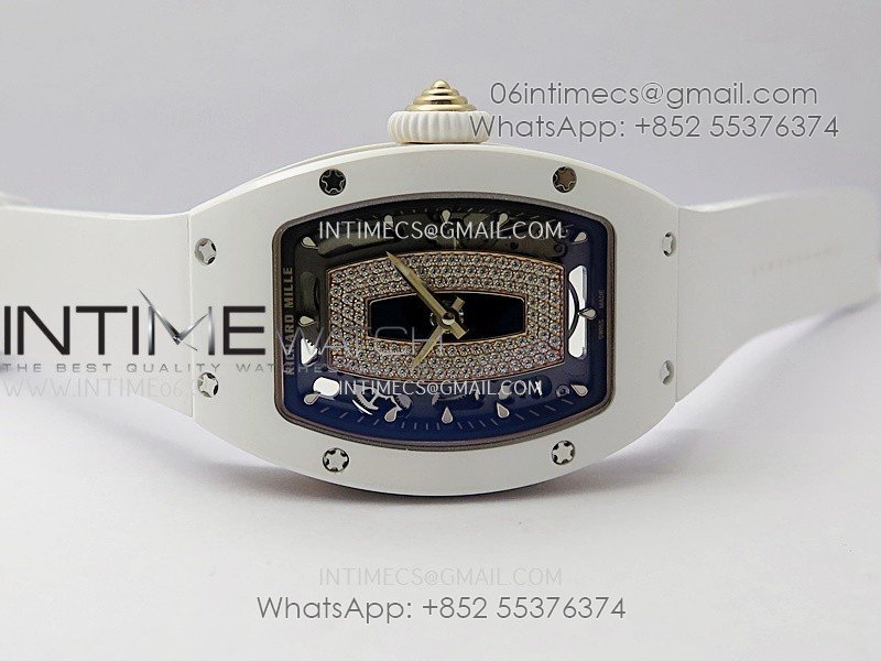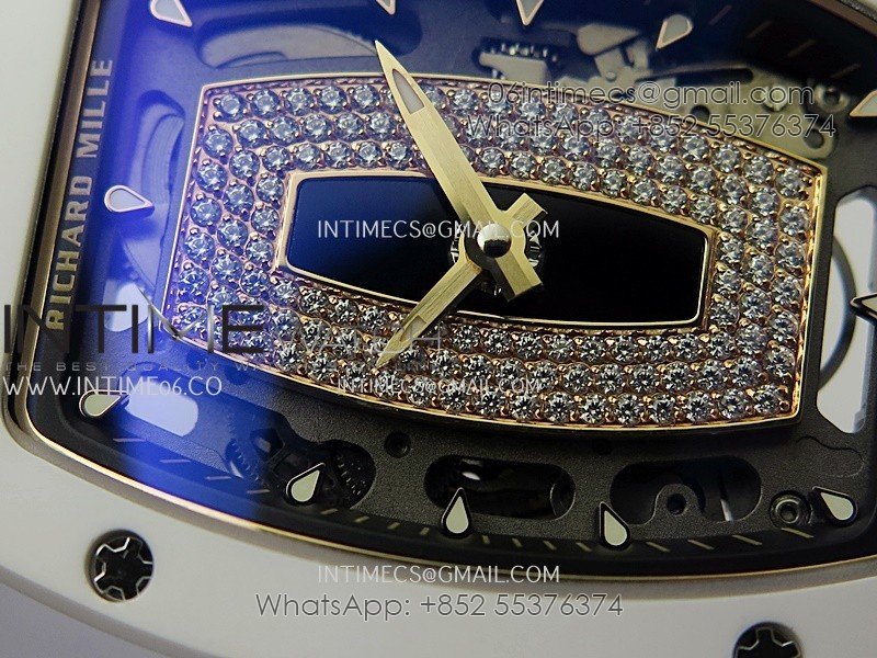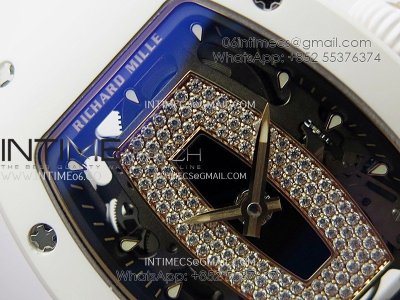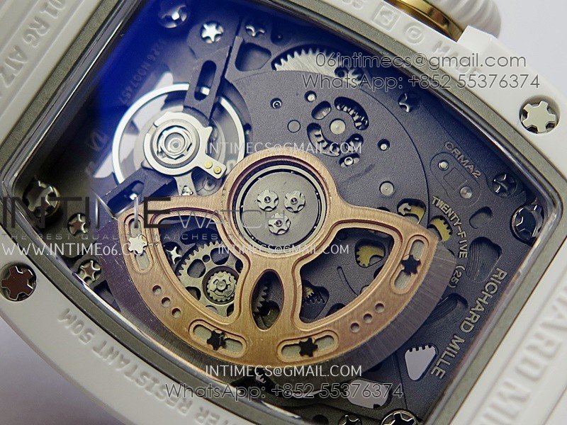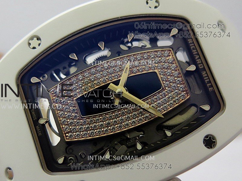 RM07 Real White Ceramic RG ZF Best Edition Black MOP Diamond Skeleton Dial On White Rubber Strap Asian CRMA2 Clone