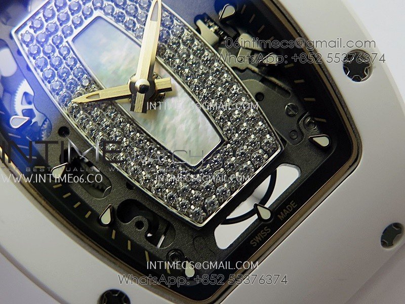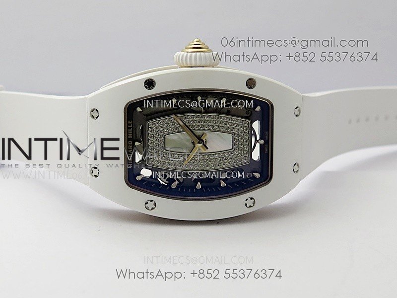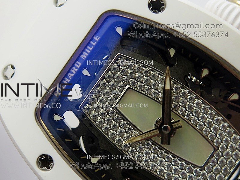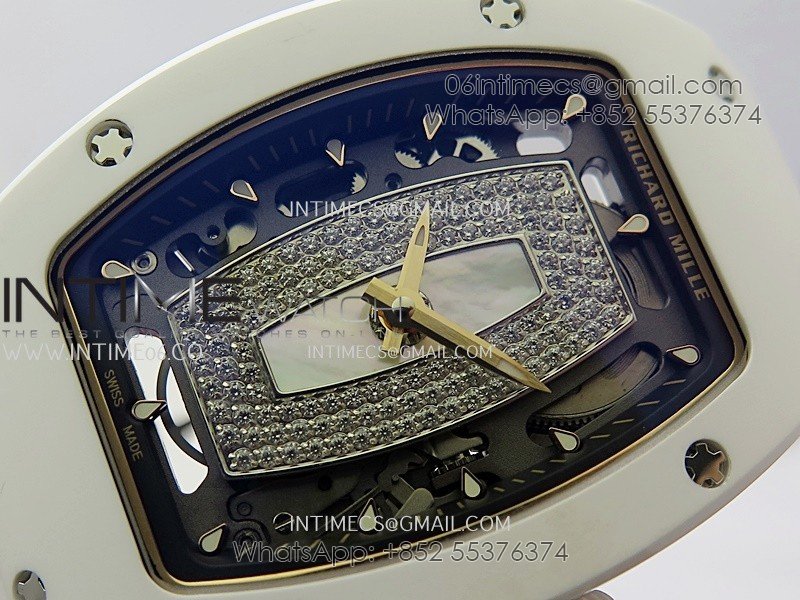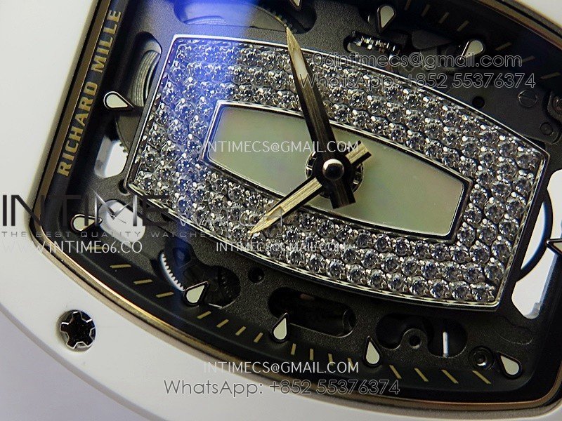 RM07 Real White Ceramic RG ZF Best Edition White MOP Diamond Skeleton Dial On White Rubber Strap Asian CRMA2 Clone