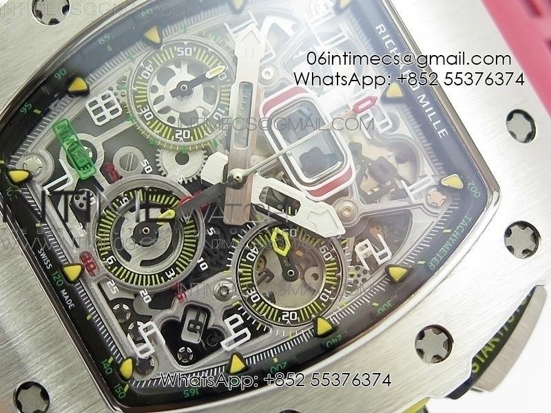 RM11-03 SS KVF 1:1 Best Edition Crystal Skeleton Dial on Red Racing Rubber Strap A7750