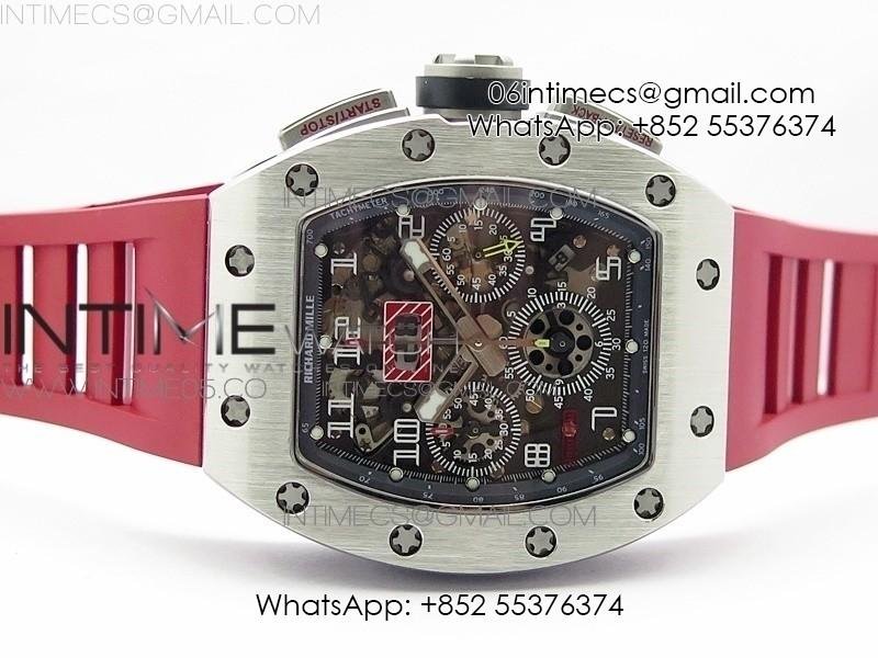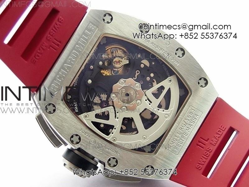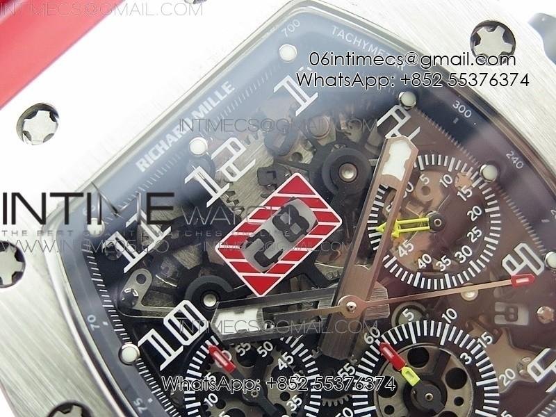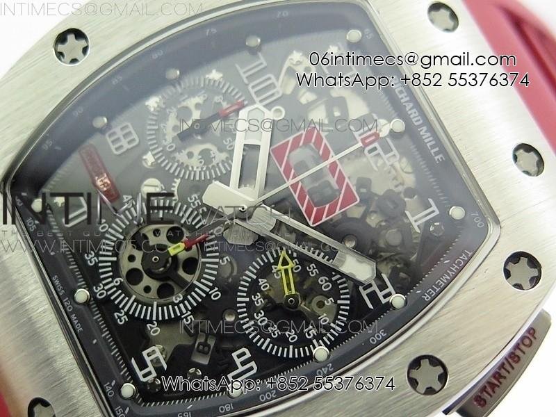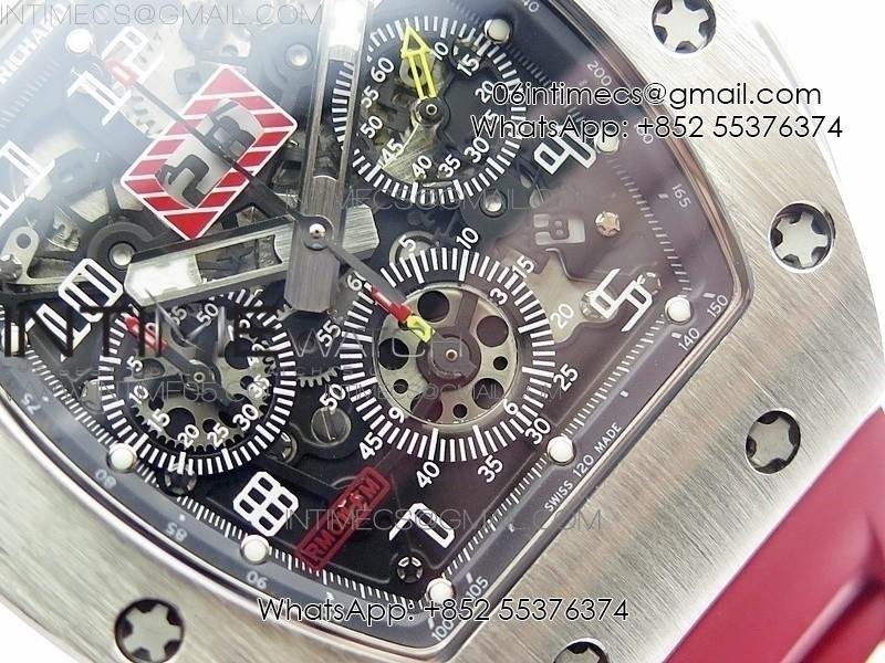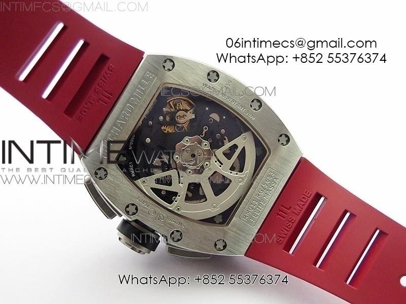 RM11-03 SS KVF 1:1 Best Edition Crystal Skeleton Dial on Red Rubber Strap A7750