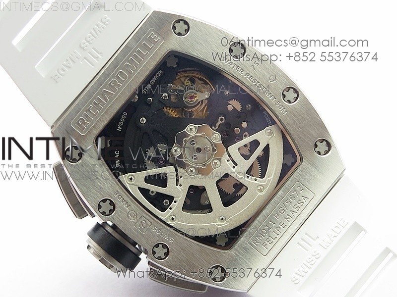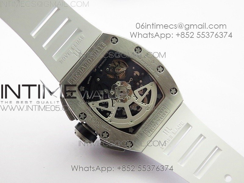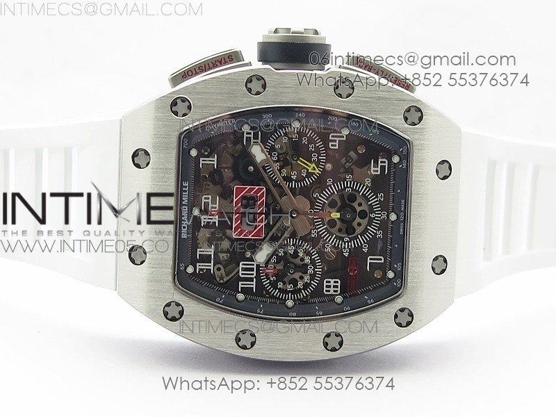 RM11-03 SS KVF 1:1 Best Edition Crystal Skeleton Dial on White Rubber Strap A7750