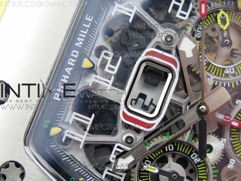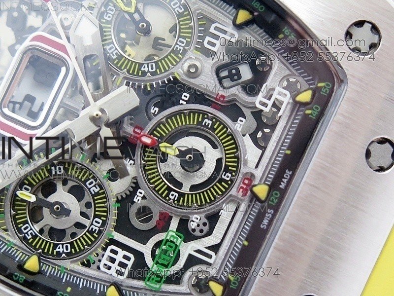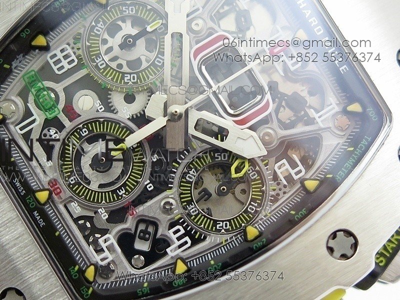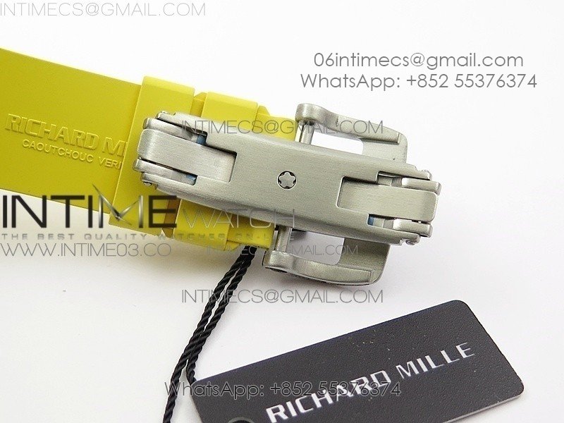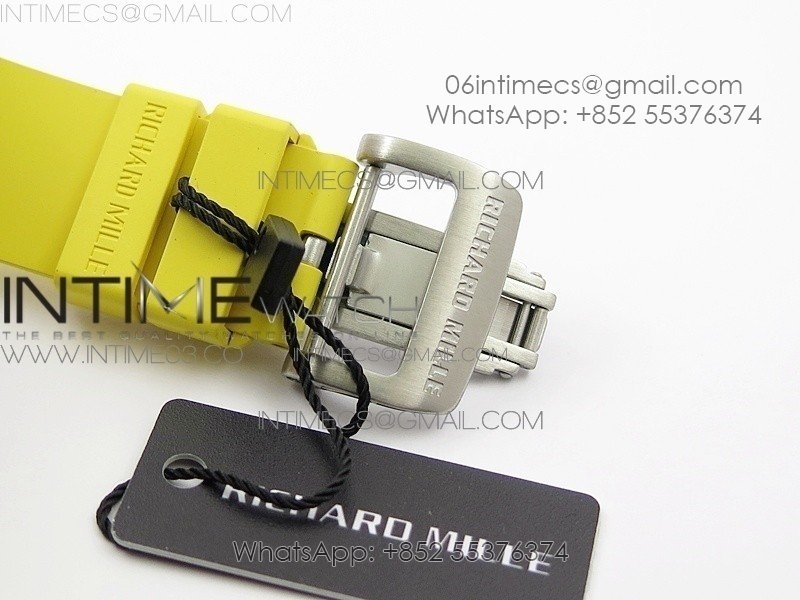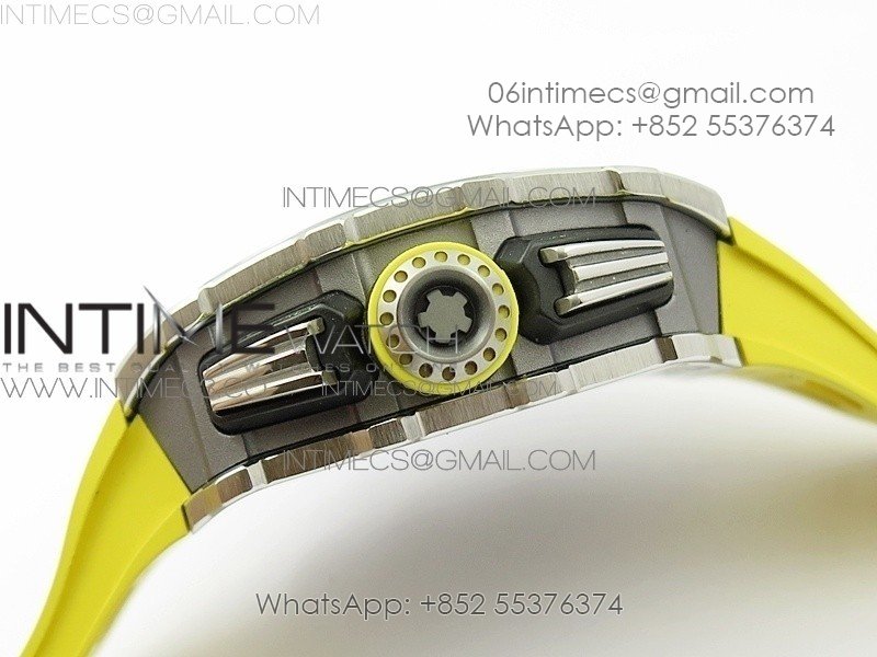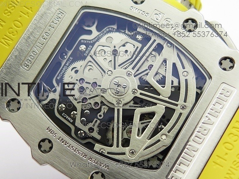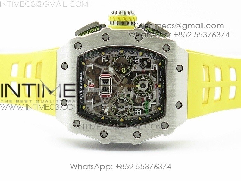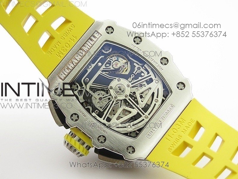 RM11-03 SS KVF 1:1 Best Edition Crystal Skeleton Dial on Yellow Racing Rubber Strap A7750