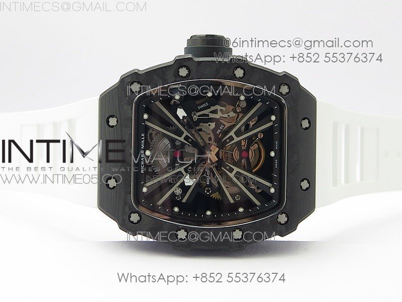 RM12-1 Real Tourbillon Forge Carbon KVF Best Edition Skeleton Dial on White Rubber Strap