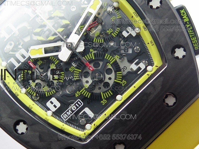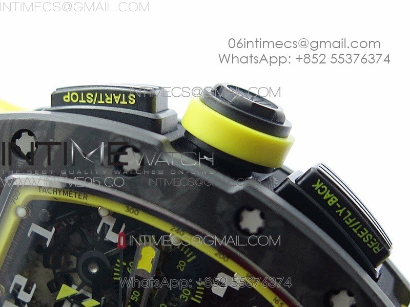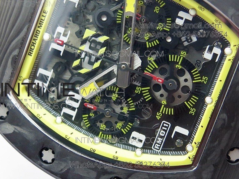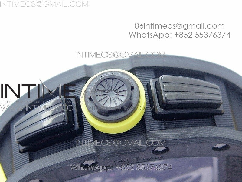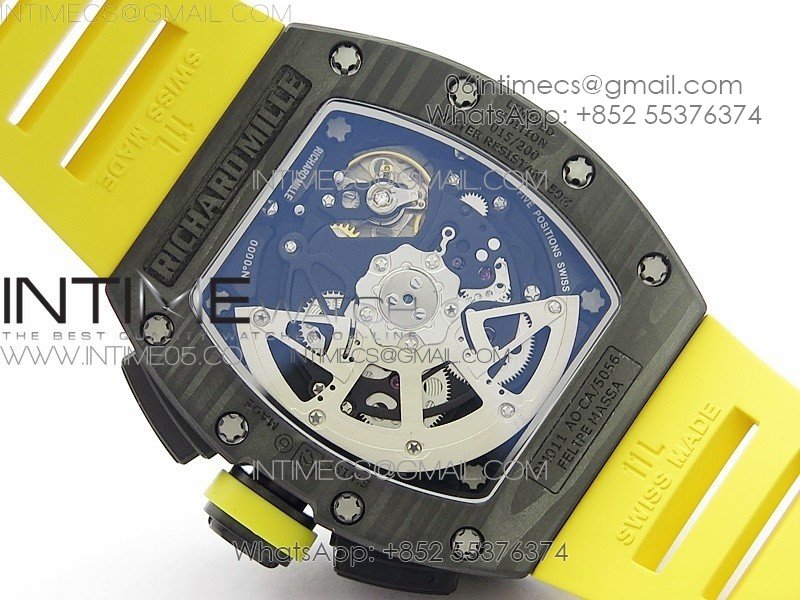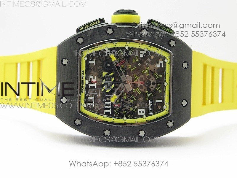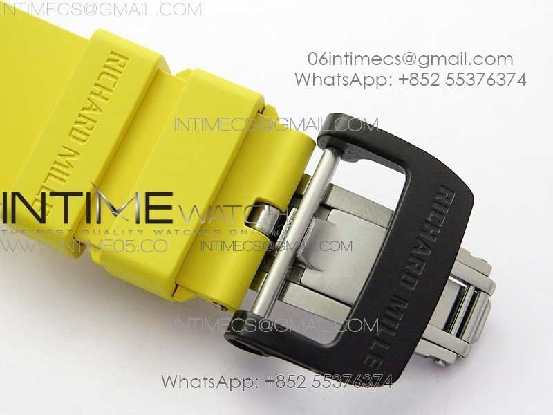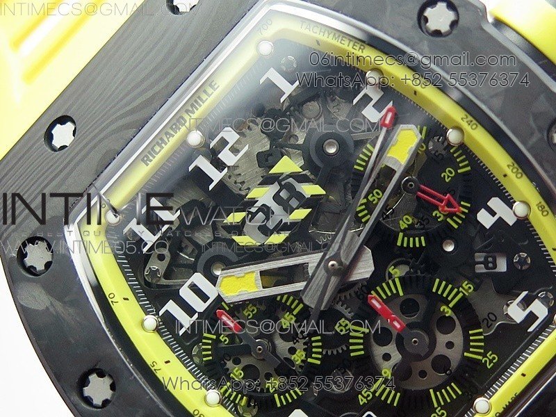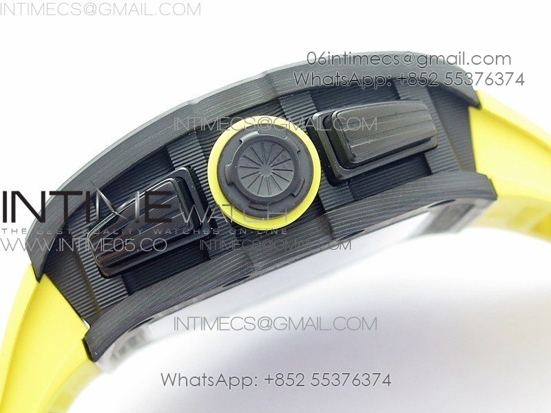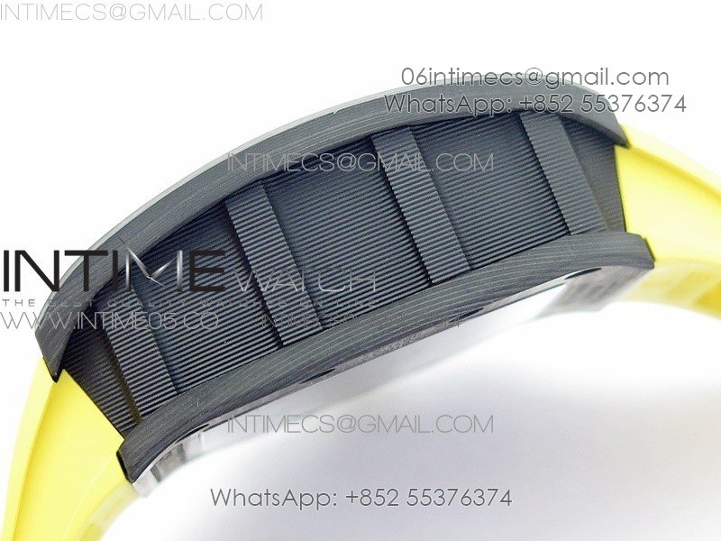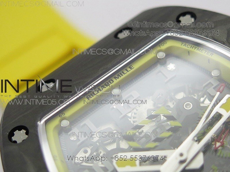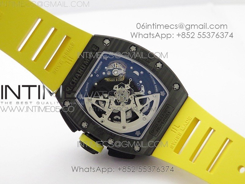 RM12-1 Real Tourbillon Forge Carbon KVF Best Edition Skeleton Dial Yellow inner bezel on Yellow Rubber Strap
