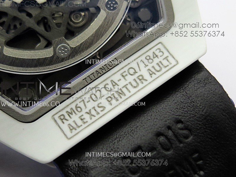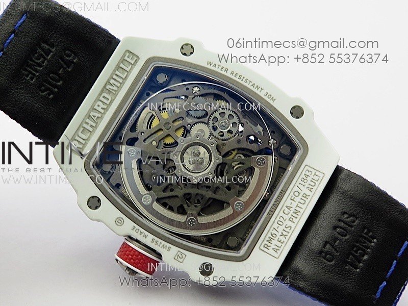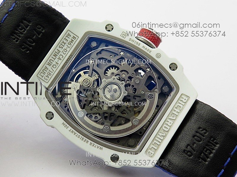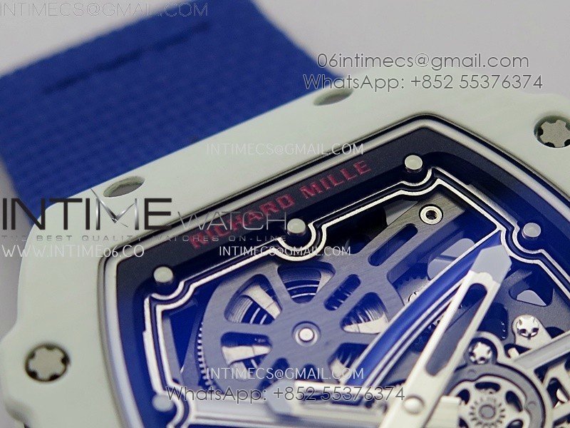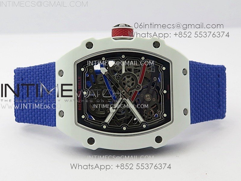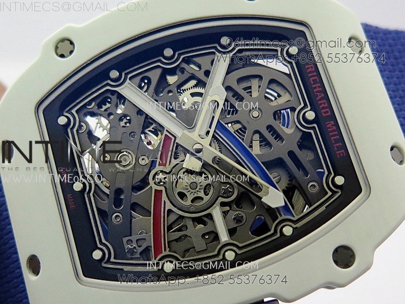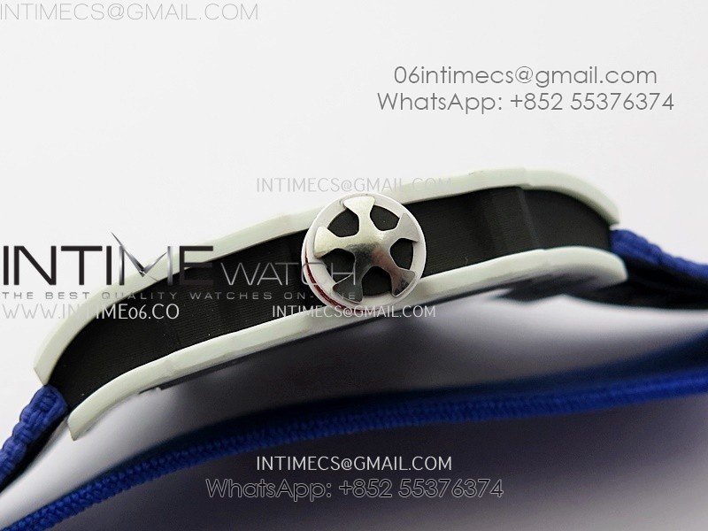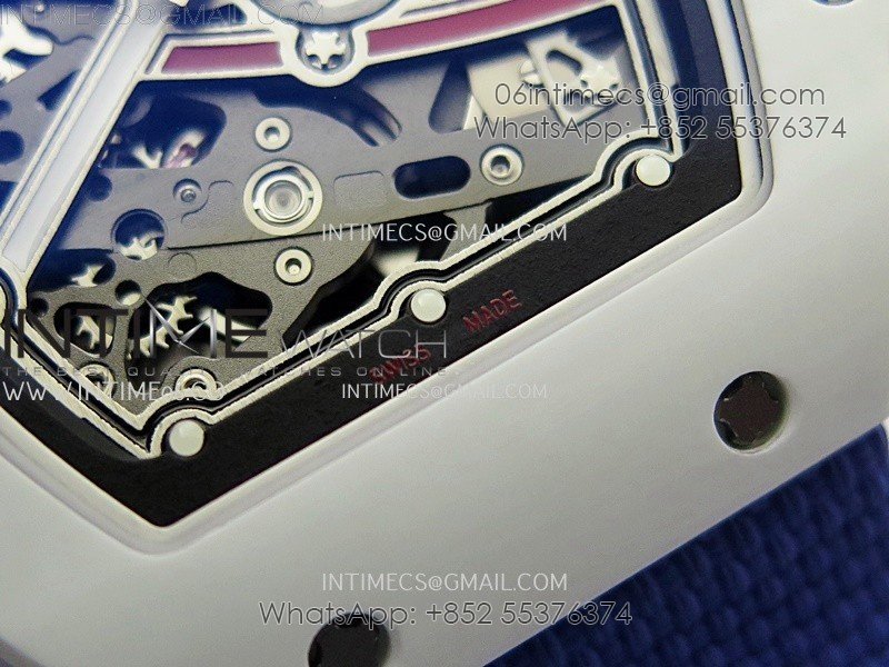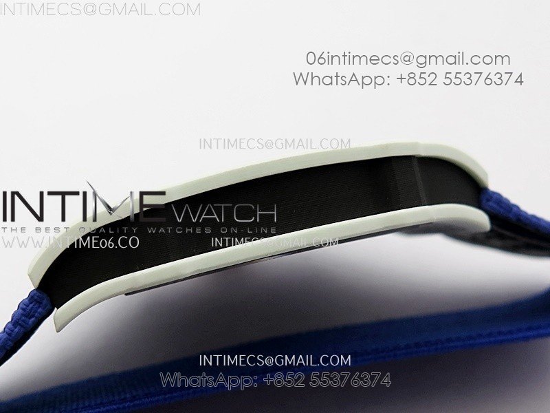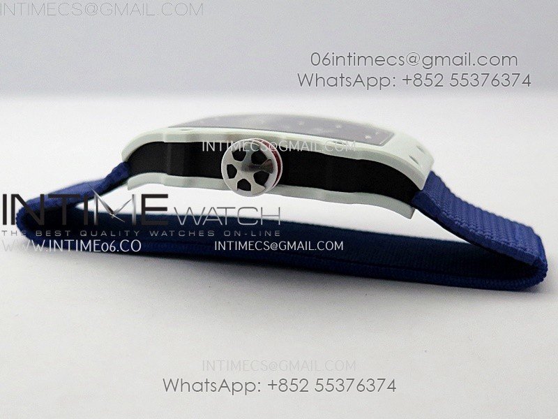 RM67-02 Black Inner Bezel Real White Ceramic 1:1 Best Edition Skeleton Dial On Blue Nylon strap CRMA7 Clone