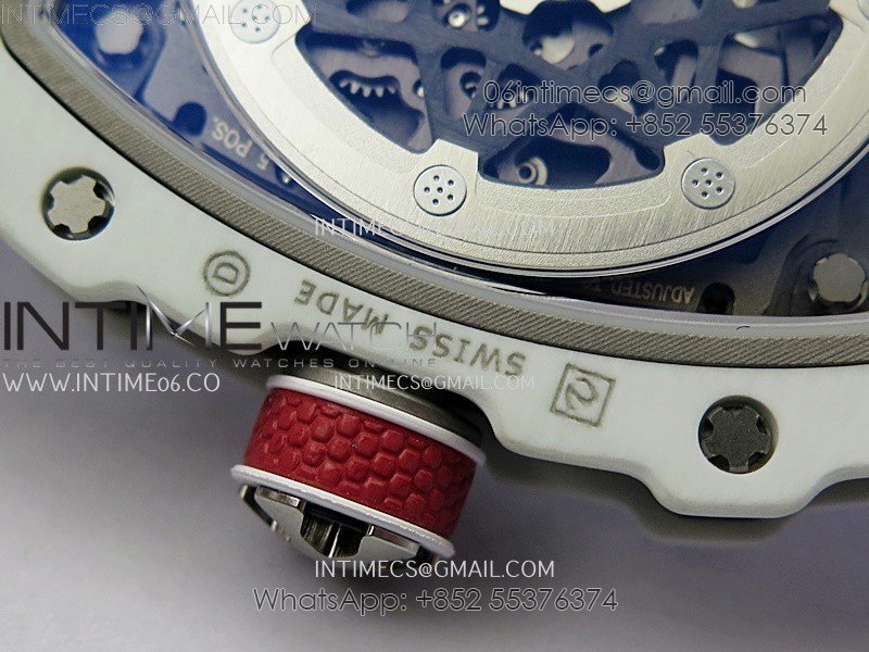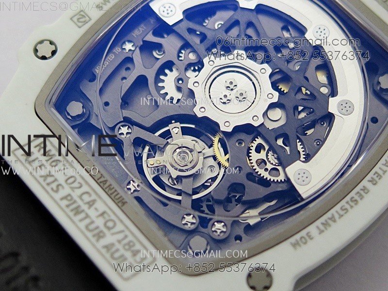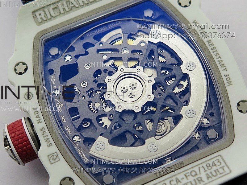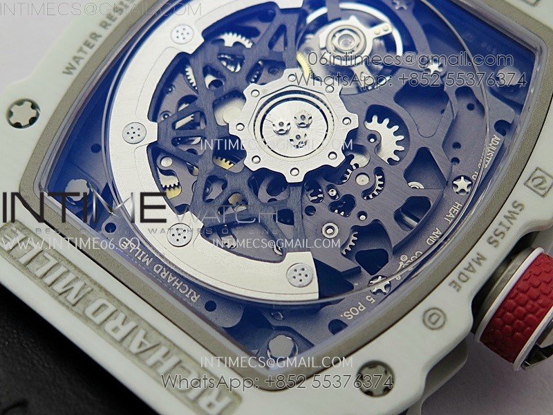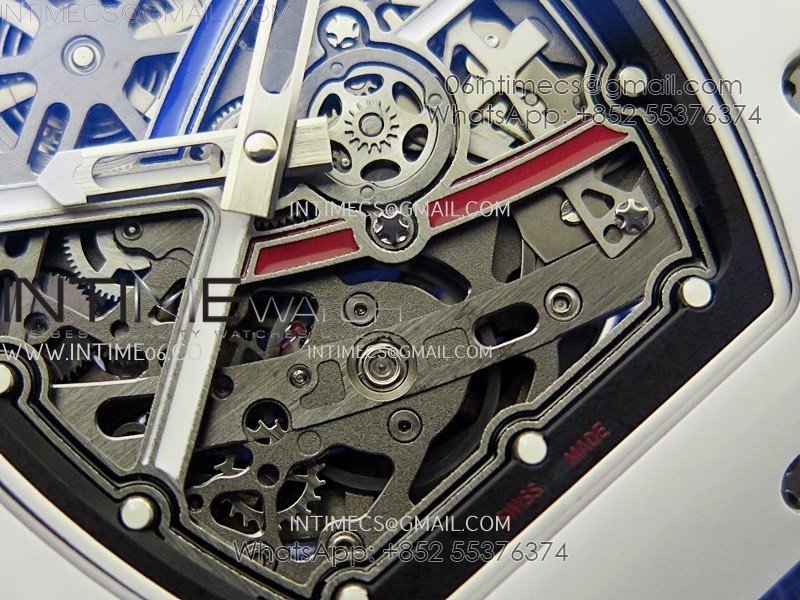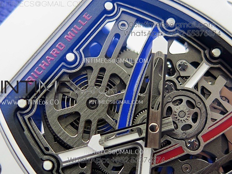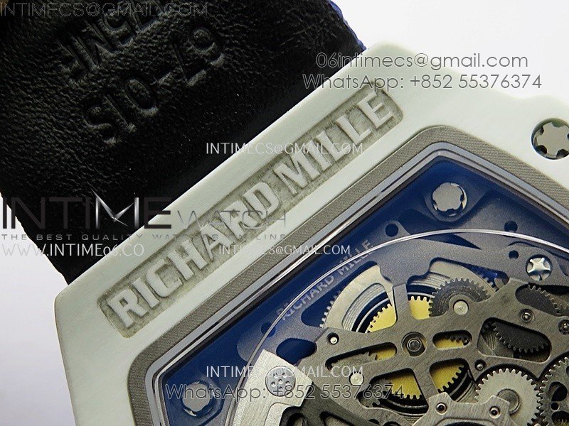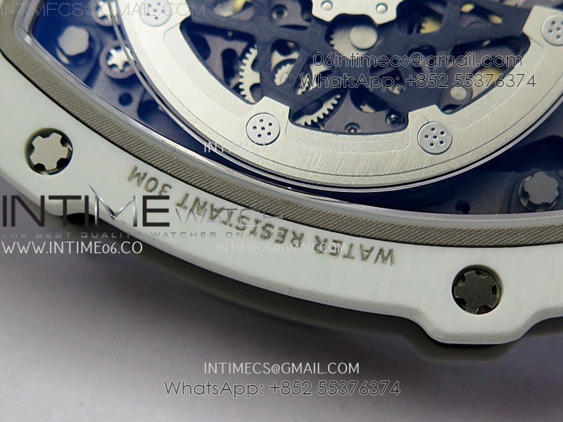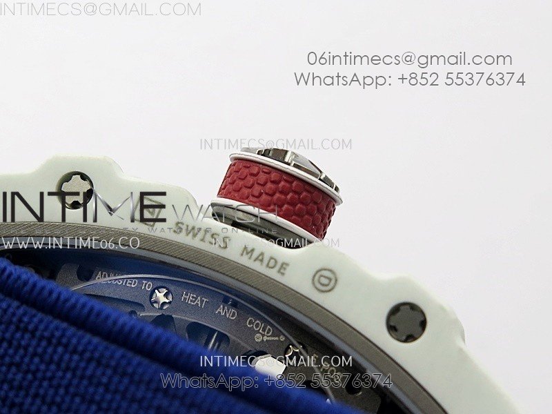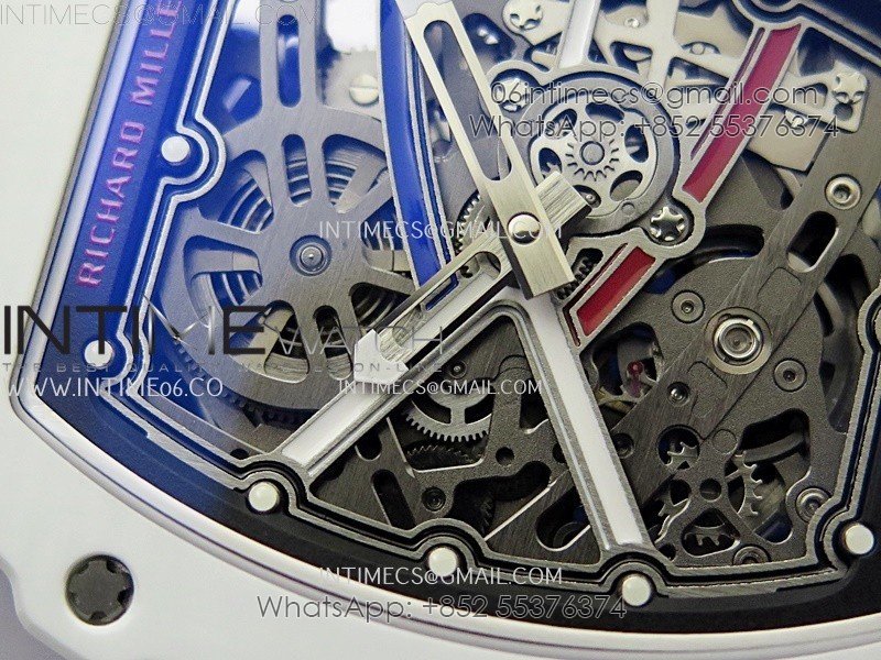 RM67-02 Black Inner Bezel Real White Ceramic 1:1 Best Edition Skeleton Dial On Blue Nylon strap CRMA7 Clone