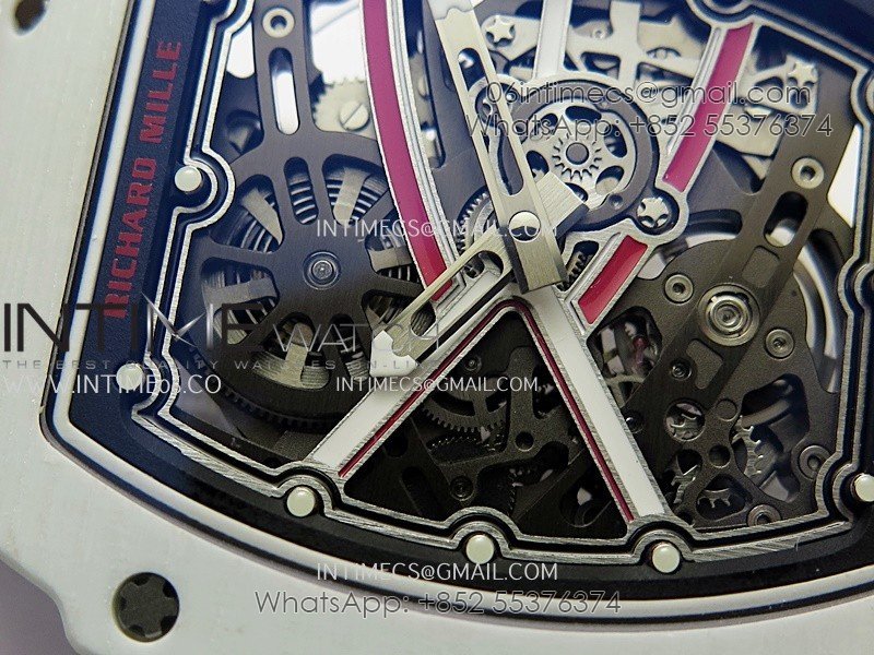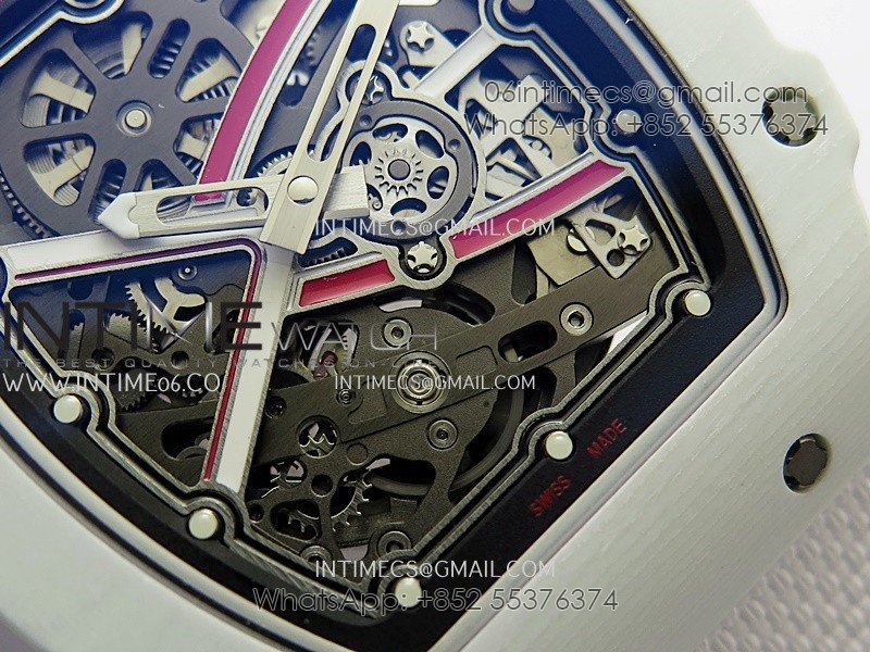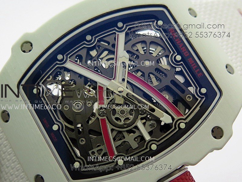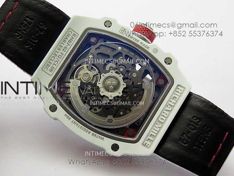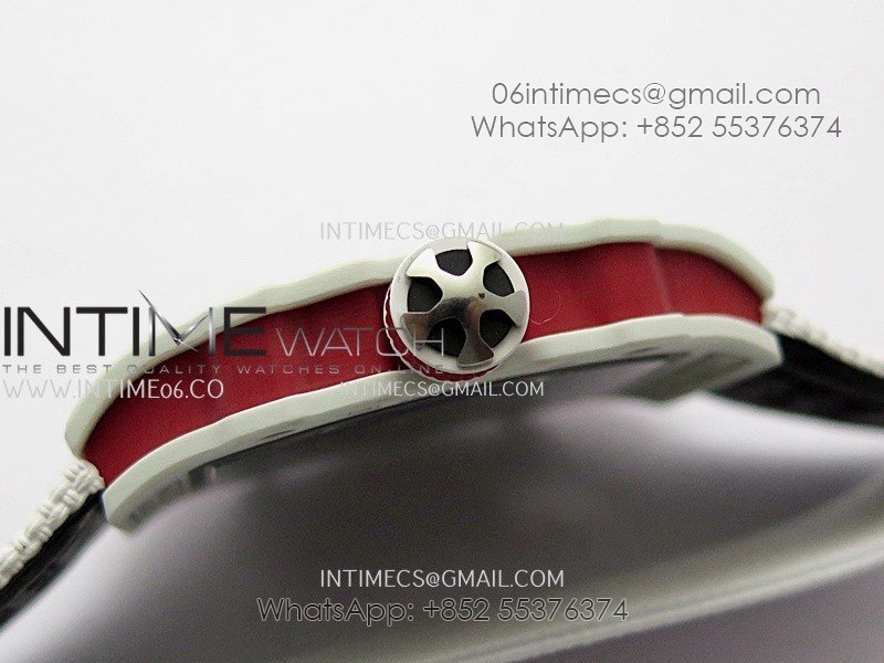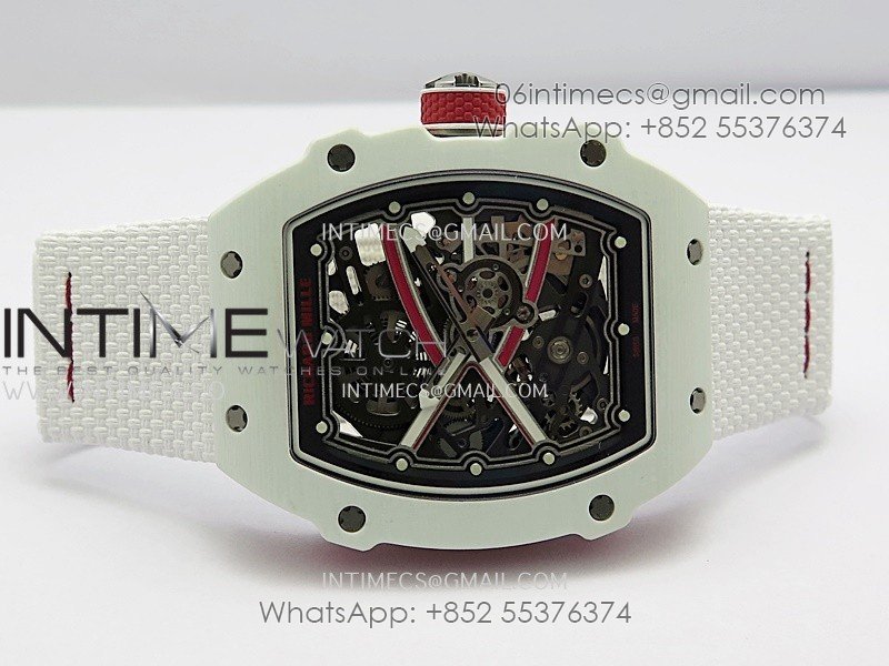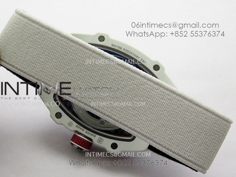 RM67-02 Real White Ceramic/Red NTPT Case 1:1 Best Edition Skeleton Dial On White Nylon strap CRMA7 Clone