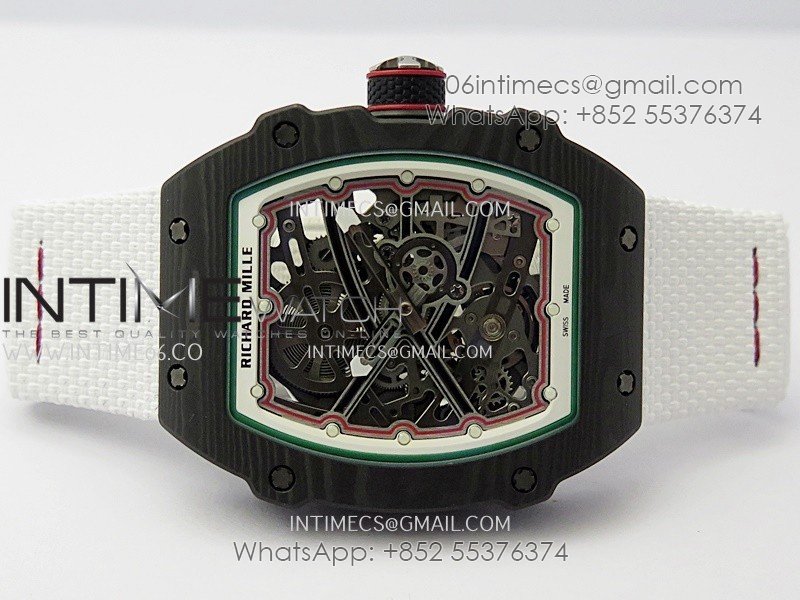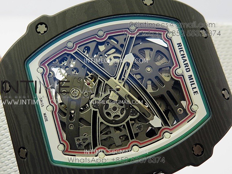 RM67-02 White Inner Bezel Real NTPT 1:1 Best Edition Skeleton Dial On White Nylon strap CRMA7 Clone