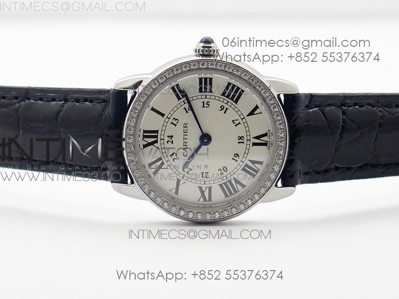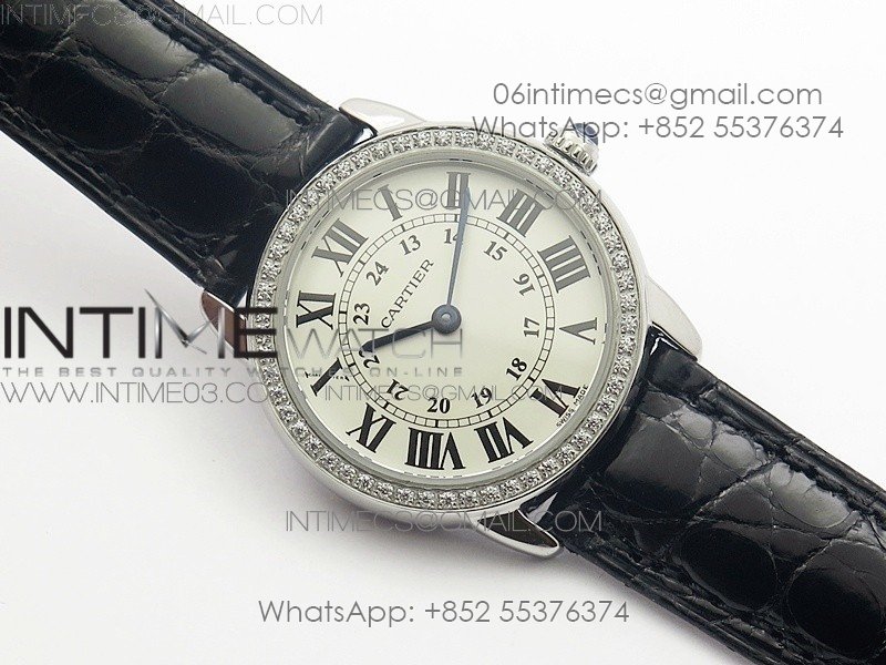 Ronde Solo de Cartier 29.5mm SS/Dia K11 1:1 Best Edition White Dial on Black Croco Leather Strap Ronda Quartz
