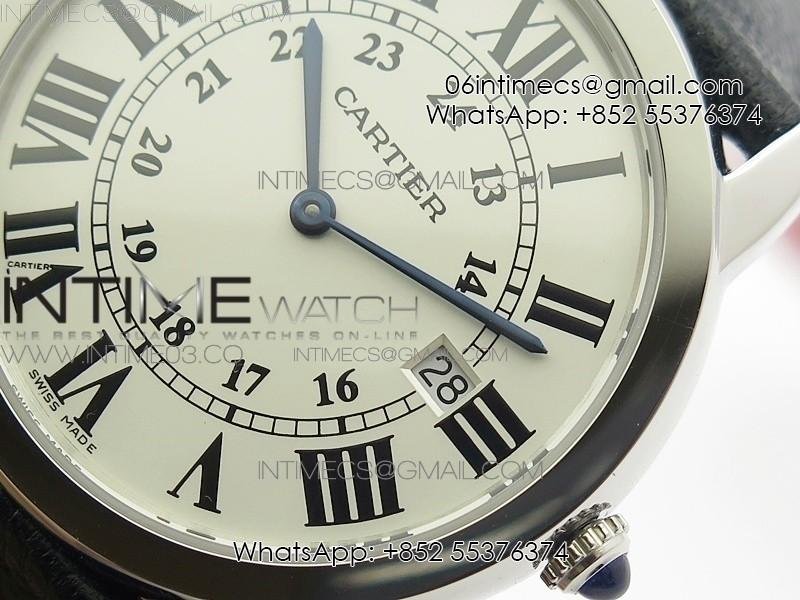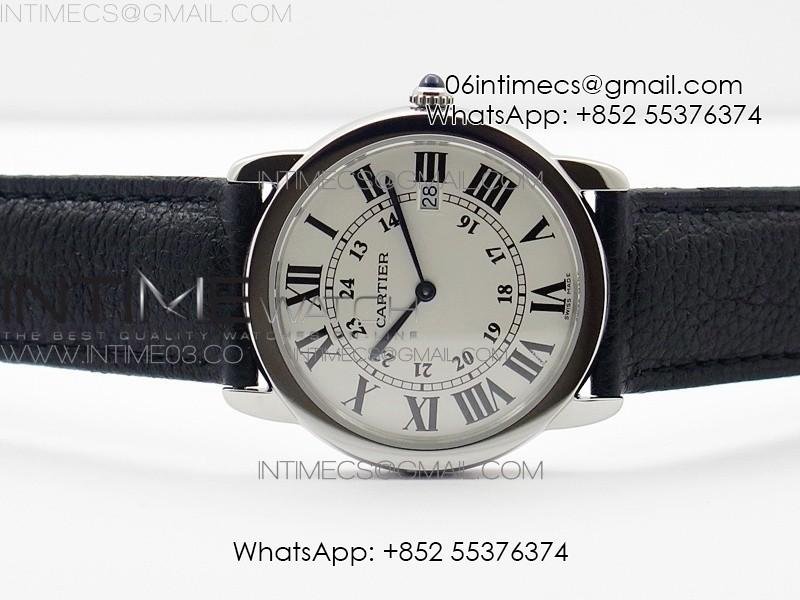 Ronde Solo de Cartier 36mm K11 1:1 Best Edition White Dial on Black leather strap Ronda Quartz