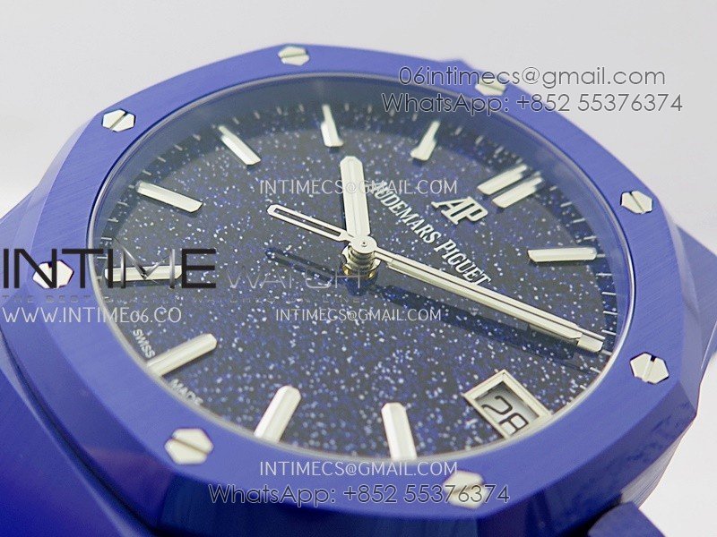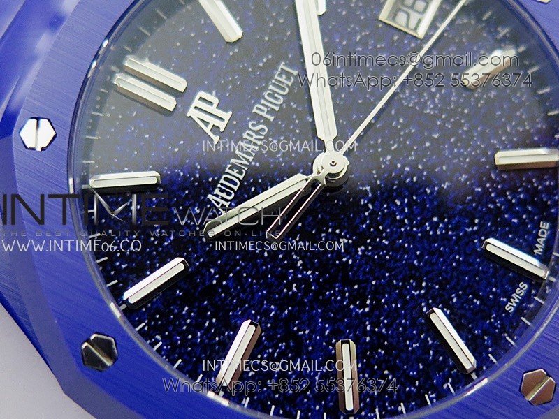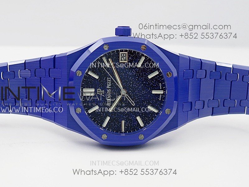 Royal Oak 15500 Blue Ceramic APSF 1:1 Best Edition Blue Starry Dial On Blue Ceramic Bracelet SA4302 Super Clone