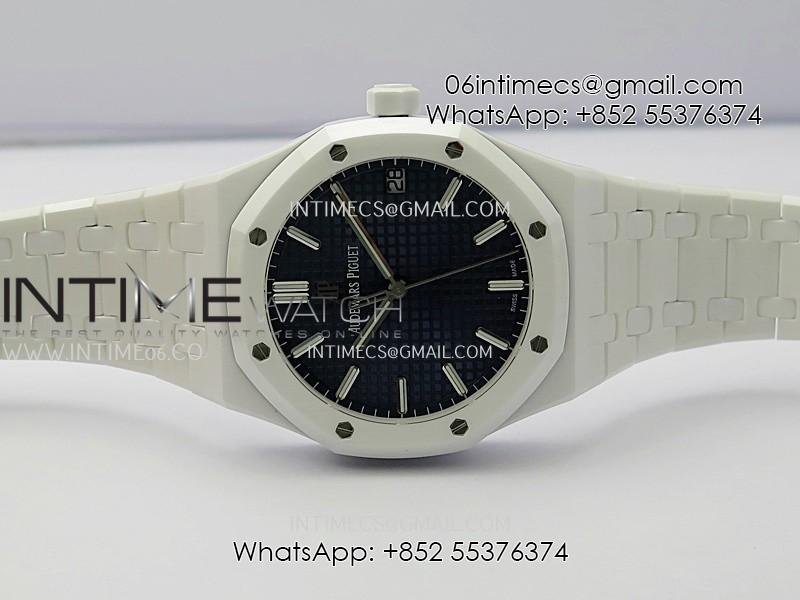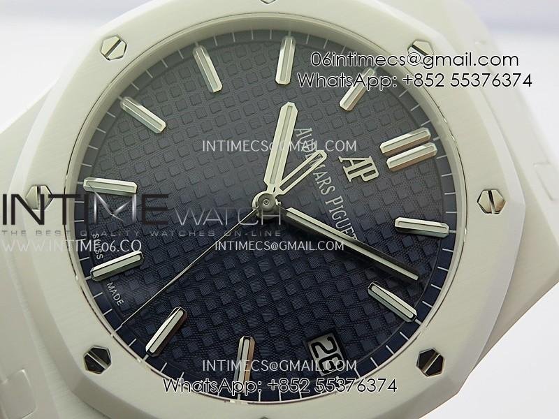 Royal Oak 15500 White Ceramic APSF 1:1 Best Edition Blue Dial On White Ceramic Bracelet SA4302 Super Clone