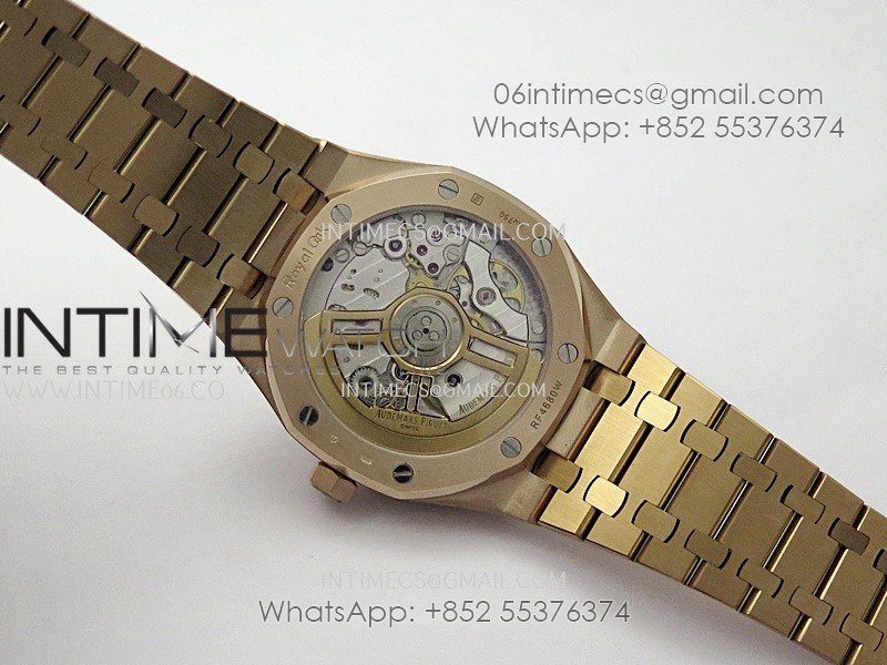 Case 18K rose gold plated solid 904L stainless steel and Cu-W metal case to increase watch weight to match the genuine gold watch weight