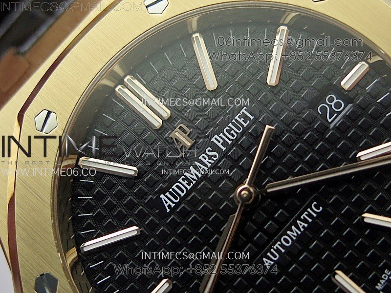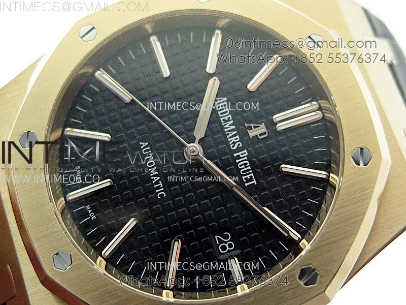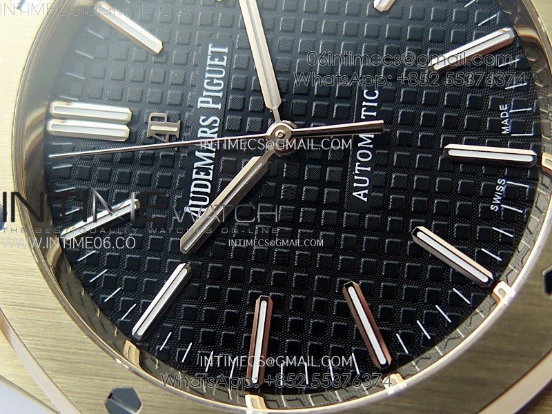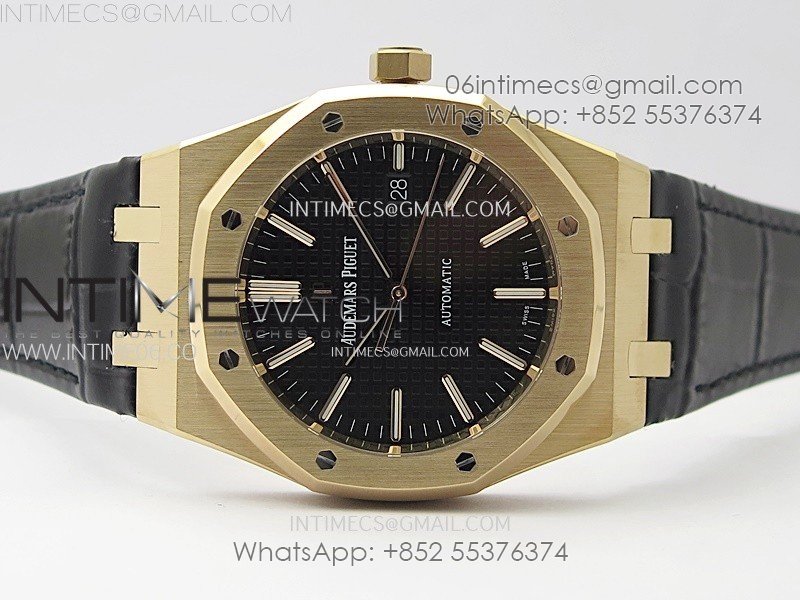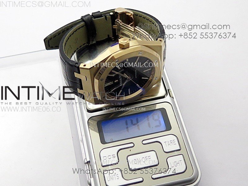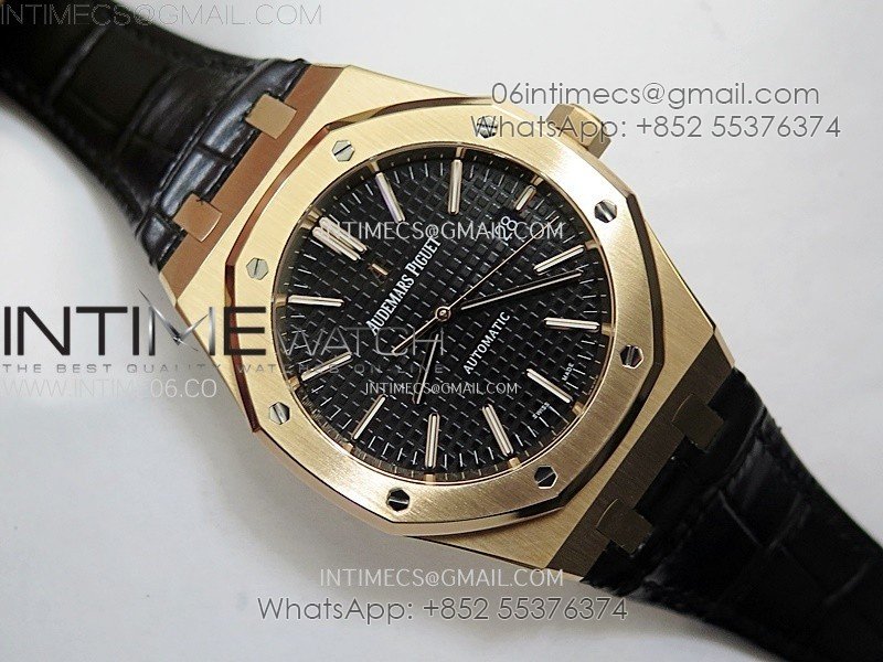 Royal Oak 41mm 15400 RG APSF 1:1 Best Edition Black Dial on Black Leather Strap SA3120 Super Clone V4 (Gain Weight)