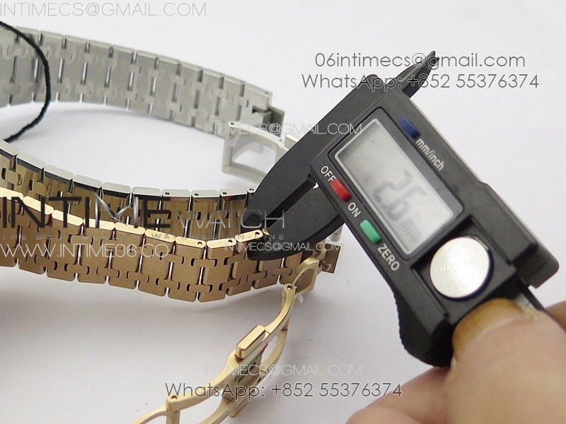 V2 Upgraded the 1:1 bracelet as genuine, the genuine RG bracelet is thinner than the stainless steel version; this V2 has the same shape, thickness as genuine bracelet, the clasp is 1:1 replicated from the genuine RG clasp sample.
