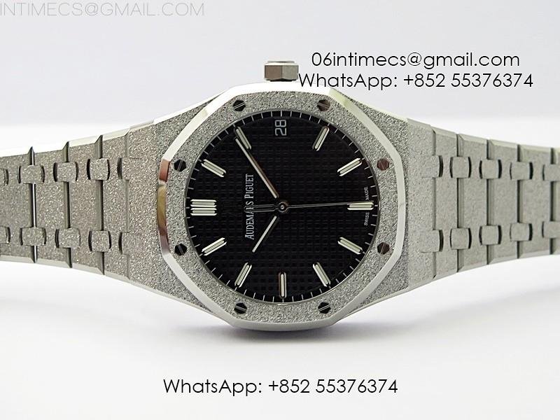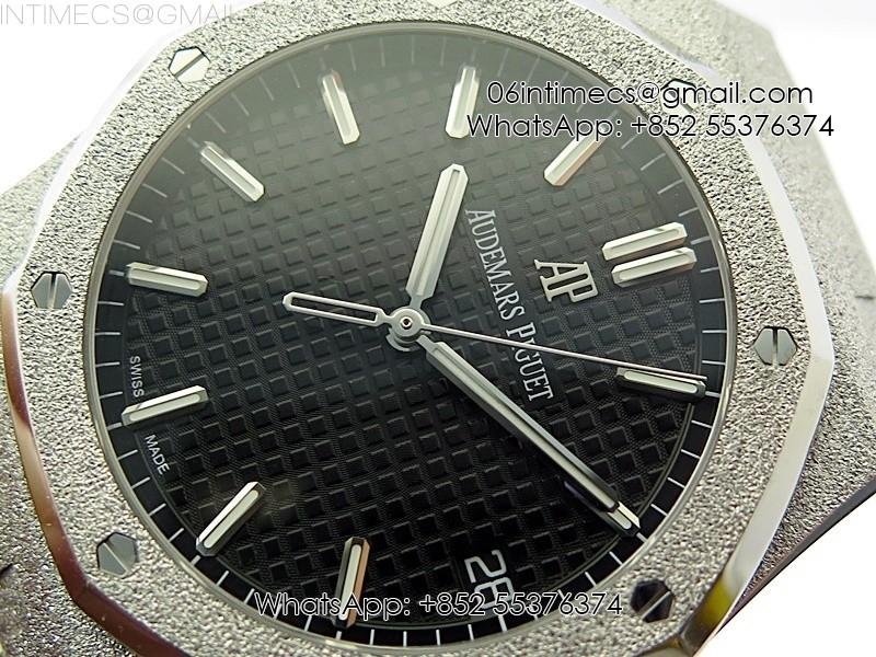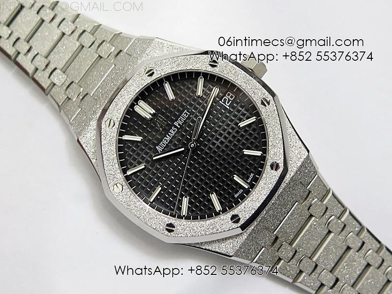 Royal Oak 41mm 15500 Frosted SS APSF 1:1 Best Edition Black Textured Dial on Frosted SS Bracelet SA4302 Super Clone