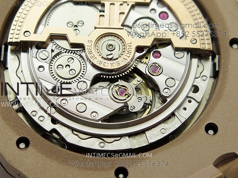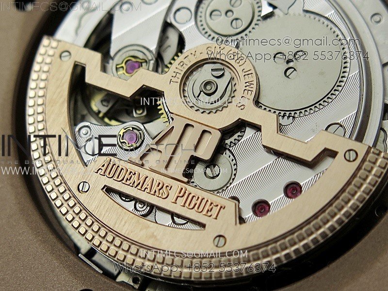 Movement Base Movement: Asian 23J Automatic Movement at 21600vph Decoration: Platinum plated movement plate and rotor which is made according to the genuine movement, the best looking AP Calibre Movement