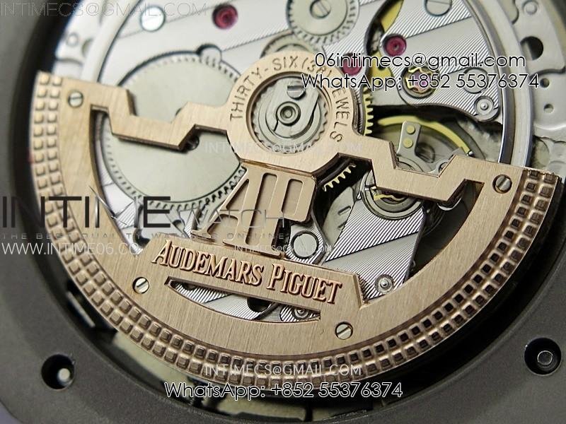Movement Base Movement: Asian 23J Automatic Movement at 21600vph Decoration: Platinum plated movement plate and rotor which is made according to the genuine movement, the best looking AP Calibre Movement