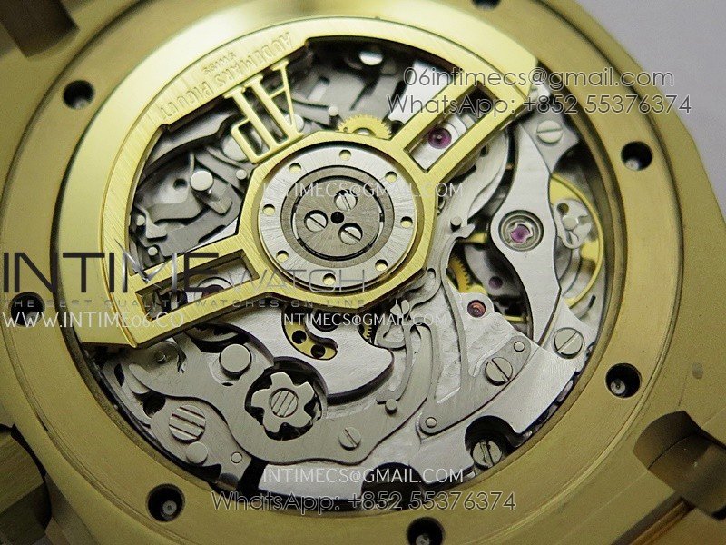 Case Frosted 18K yellow gold plated solid 316L stainless steel and Cu-W metal case to increase watch weight to match the genuine gold watch weight