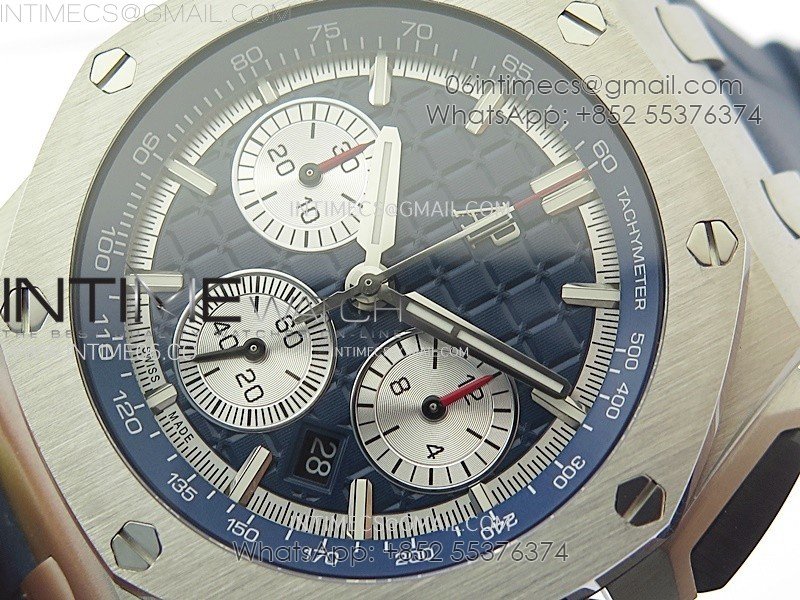 Royal Oak Offshore 26240 SS Bezel APF 1:1 Best Edition Blue/Silver Dial on Blue Rubber Strap A4401