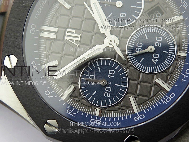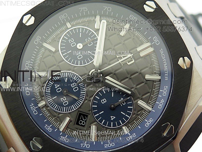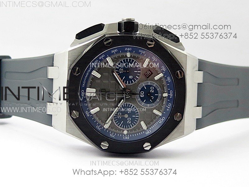 Royal Oak Offshore 26240 SS Black Ceramic Bezel APF 1:1 Best Edition Gray/Blue Dial on Gray Rubber Strap A4401