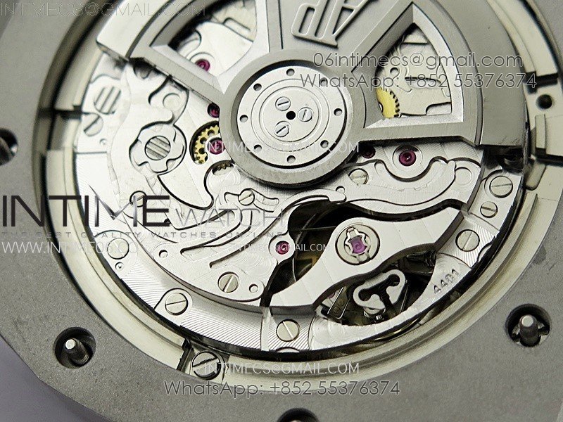 Movement Base Movement: Asian 7750 automatic chronograph movement at 28800vph; Decoration: Platinum plated movement plate and rotor which are made according to the genuine movement, the best looking AP Calibre 4401 Movement Clone at the moment.