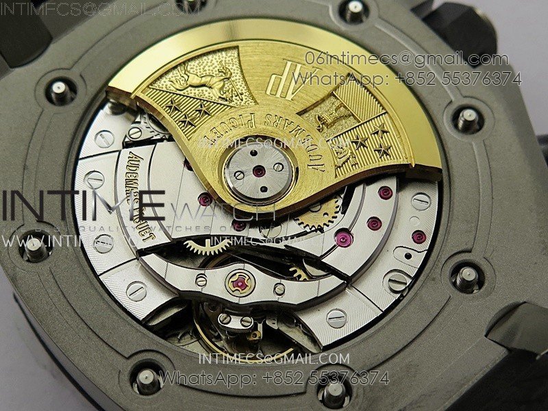 Movement   Base Movement: Asian 7750 automatic chronograph movement at 28800vph; Decoration: Platinum plated movement plate and rotor which are made according to the genuine movement, the best looking AP Calibre 3126 Movement Clone at the moment.