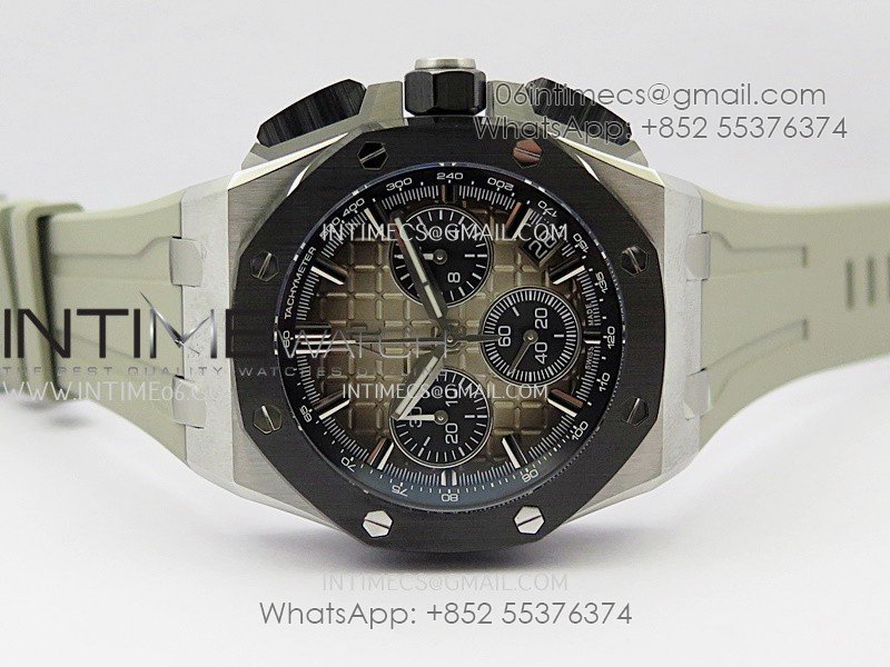 Royal Oak Offshore 43mm 26420 Ceramic Bezel SS APSF 1:1 Best Edition Light Brown Dial On Gray Rubber Strap SA4401 Super Clone