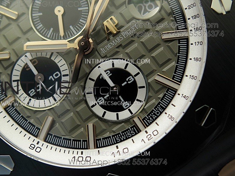 Movement Base Movement: Asian 7750 automatic chronograph movement at 28800vph; Decoration: Platinum plated movement plate and rotor which are made according to the genuine movement, the best looking AP Calibre 3126 Movement Clone at the moment.