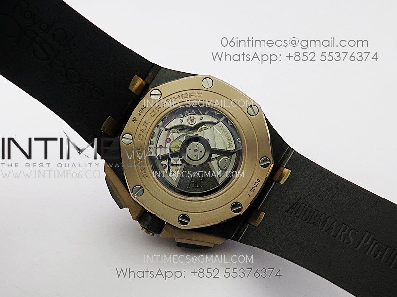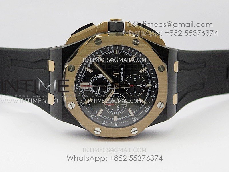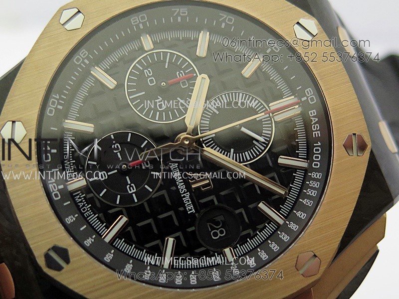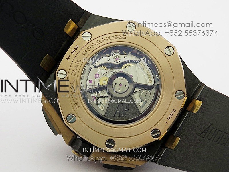 Royal Oak Offshore 44mm Carbon/RG APJF 1:1 Best Edition Black Dial On Black Rubber Strap A3126