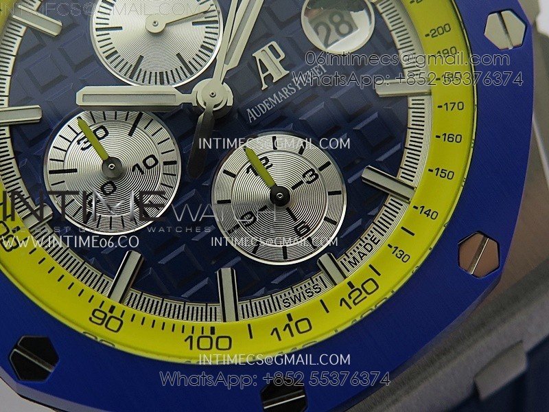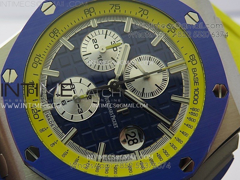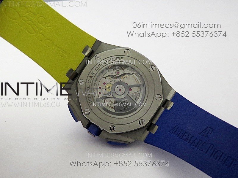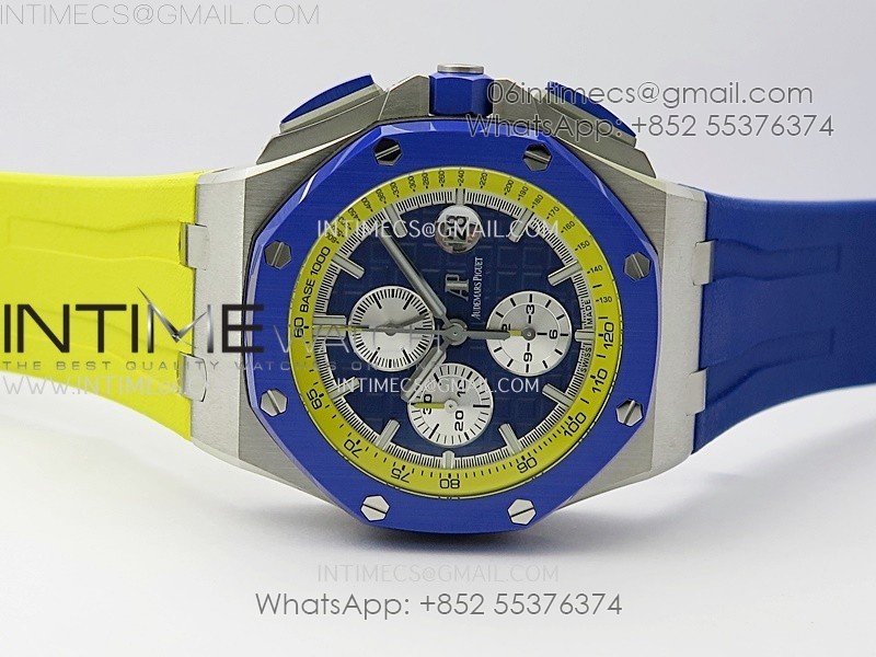 Royal Oak Offshore 44mm SS TKF 1:1 Best Edition Blue/Yellow Dial on Blue/Yellow Rubber Strap A3126