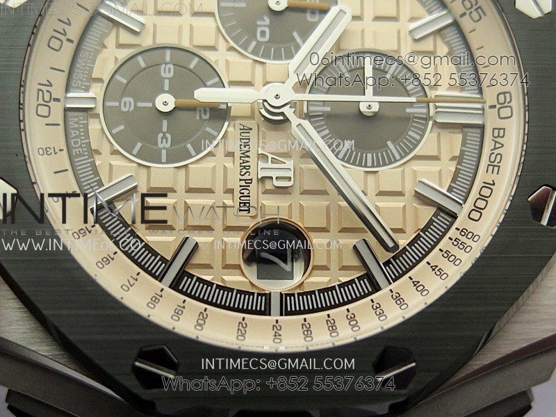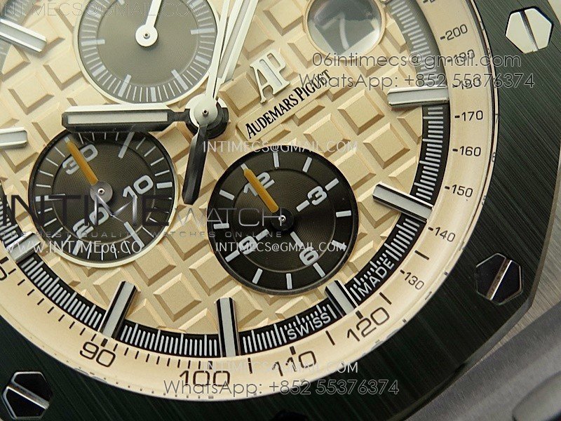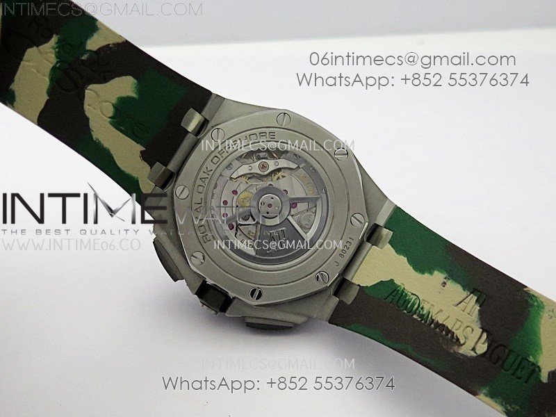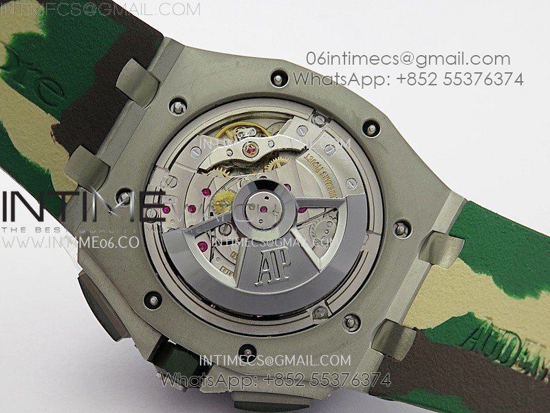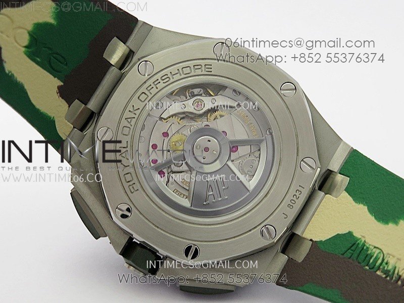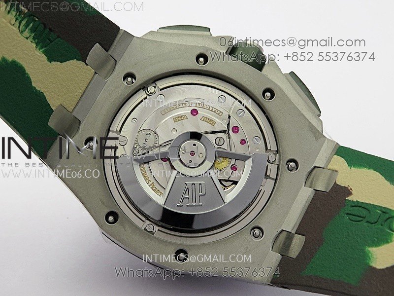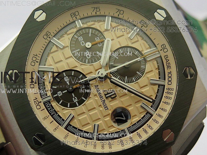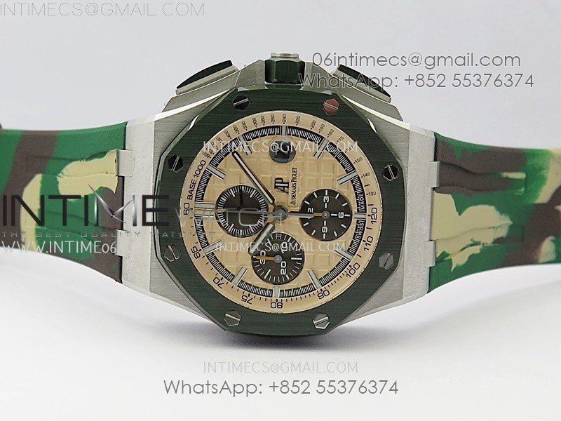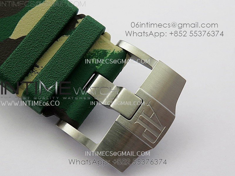 Royal Oak Offshore 44mm SS TKF 1:1 Best Edition Cream Dial on Green Camo Rubber Strap A3126