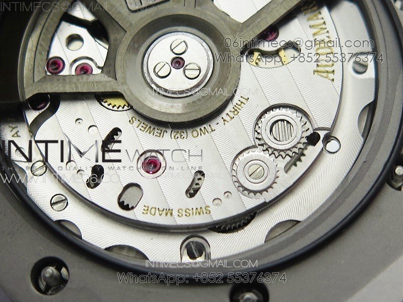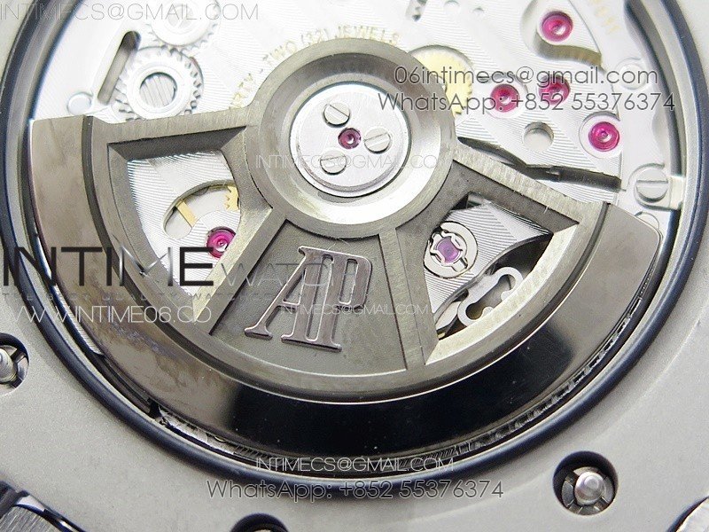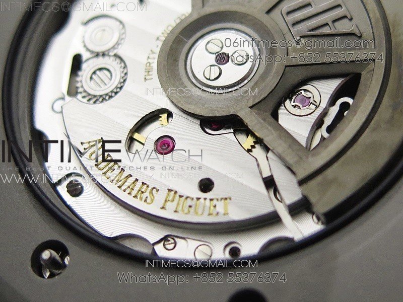Movement Base Movement: MIYOTA 9015 automatic movement; Decoration: Platinum plated movement plate and rotor which are made according to the genuine movement, the best looking AP Calibre 4308 Movement Clone at the moment.