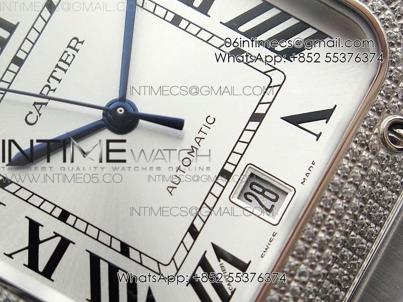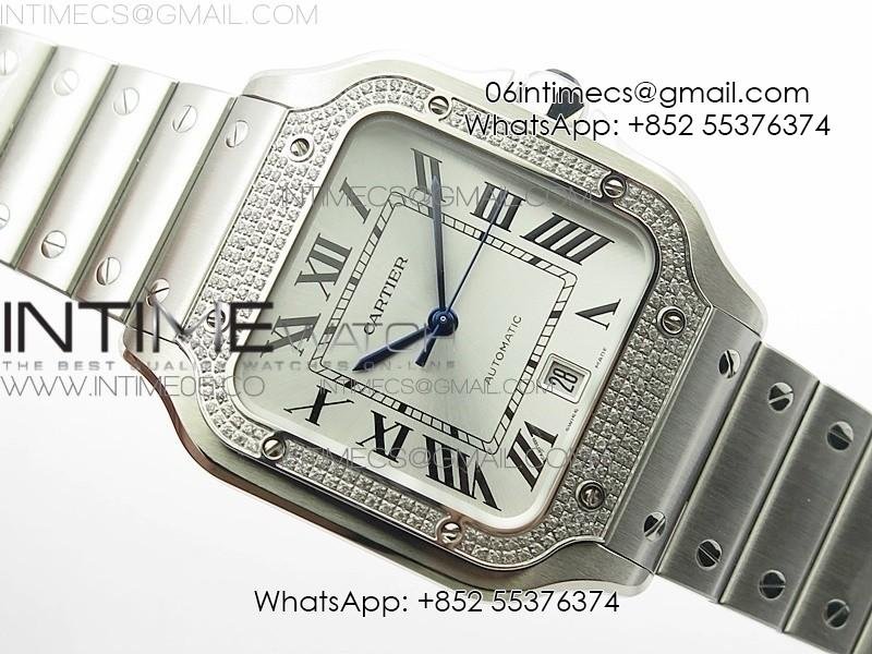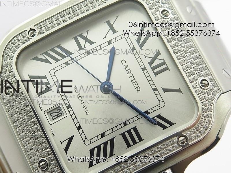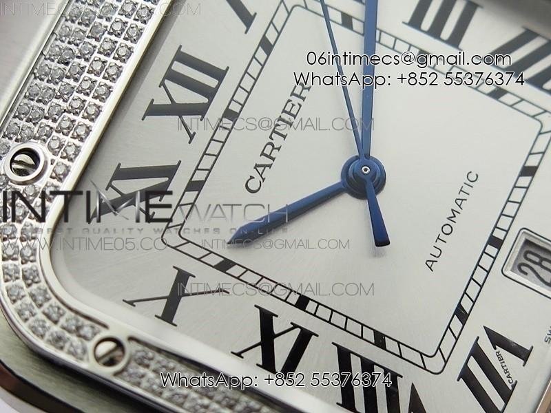 Santos de Cartier 40mm 2018 Diamonds Bezel RXW 1:1 Best Edition White Dial on SS SmartLinks Bracelet MIYOTA 9015