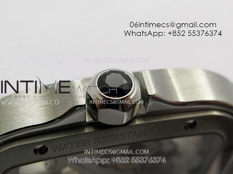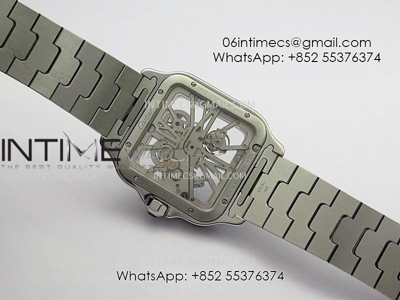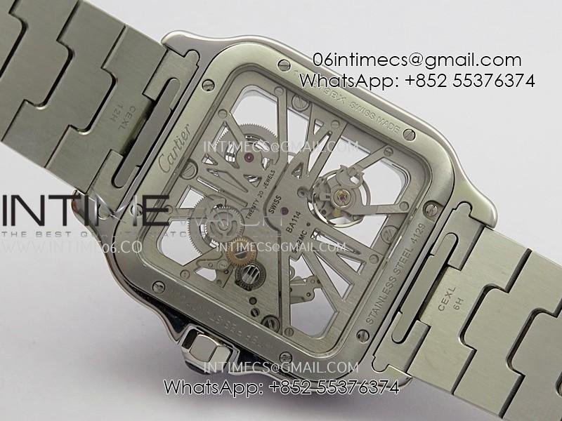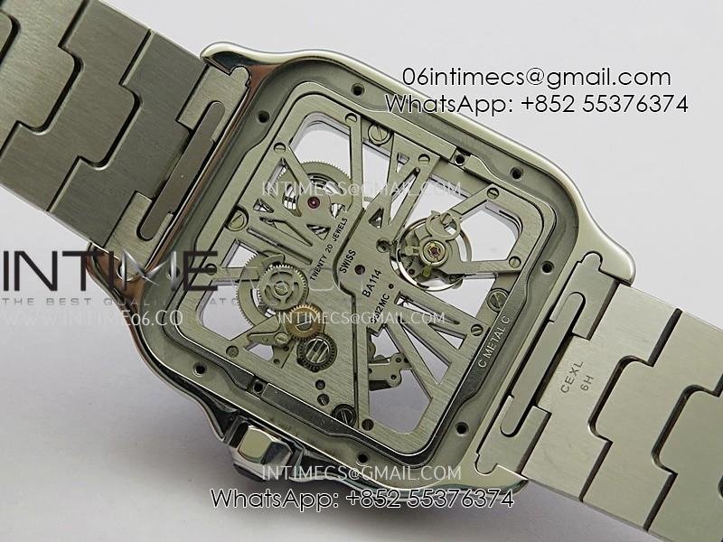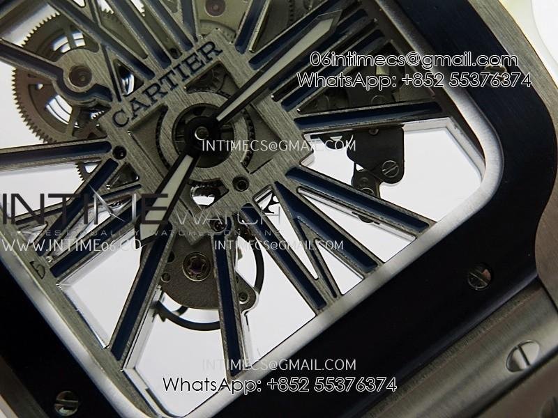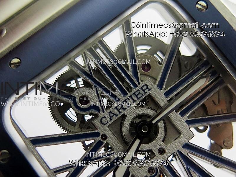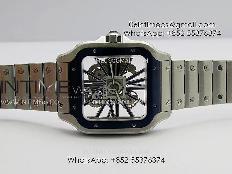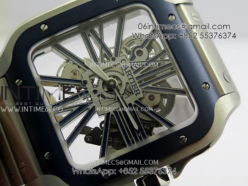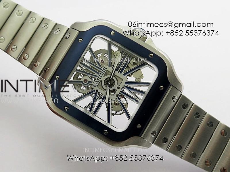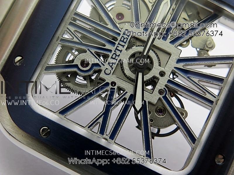 Santos de Cartier Skeleton SS MLF Skeleton Blue Skeleton Dial Blue Bezel on SS SmartLink Bracelet 9611MC Super Clone