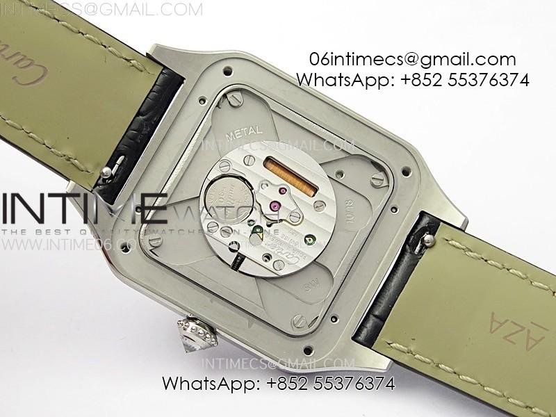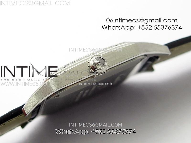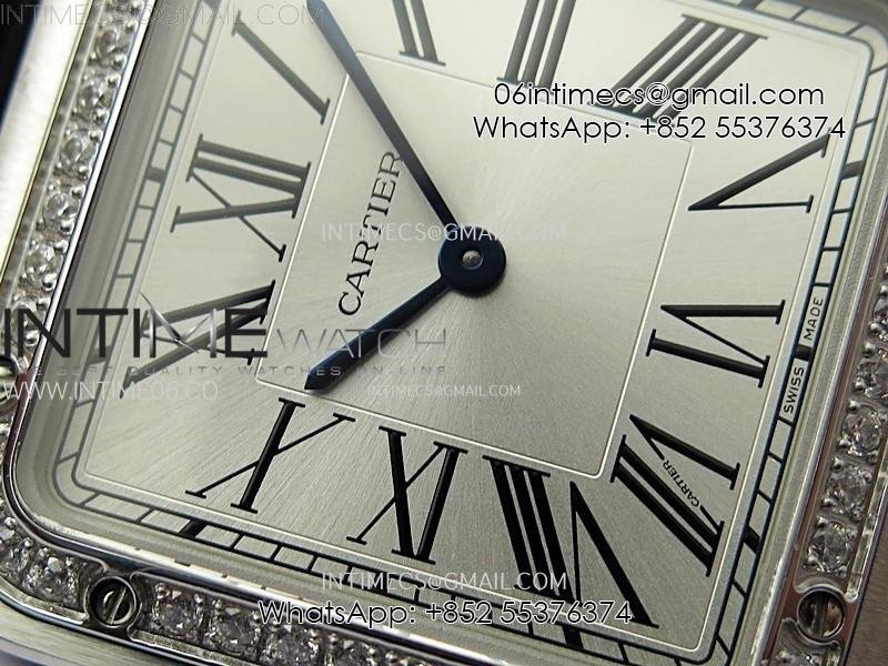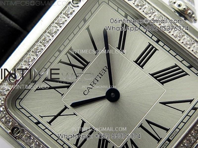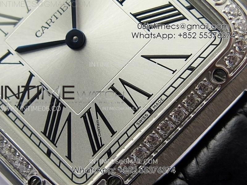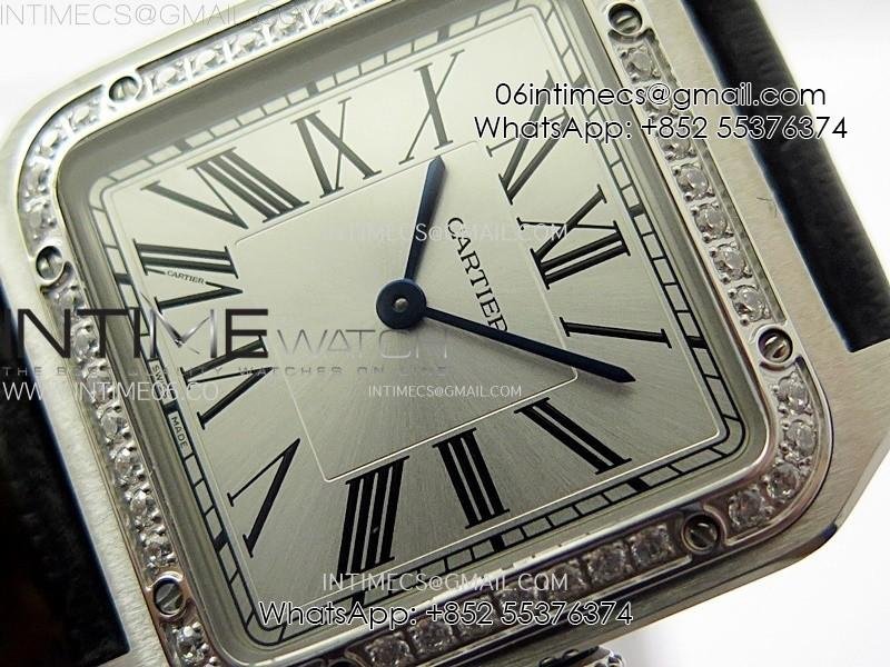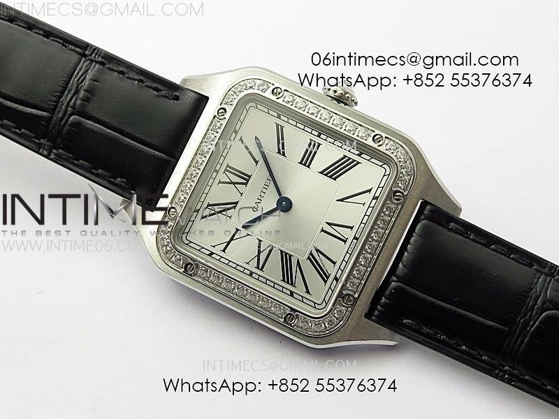 Santos Dumont 43.5mm SS/Diamonds Bezel F1F Best Edition Silver Dial on Black Leather Strap Quartz