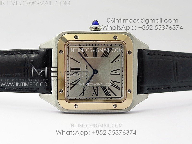 Santos Dumont 46.6mm SS/RG F1F Best Edition Silver Dial on Black Leather Strap Quartz