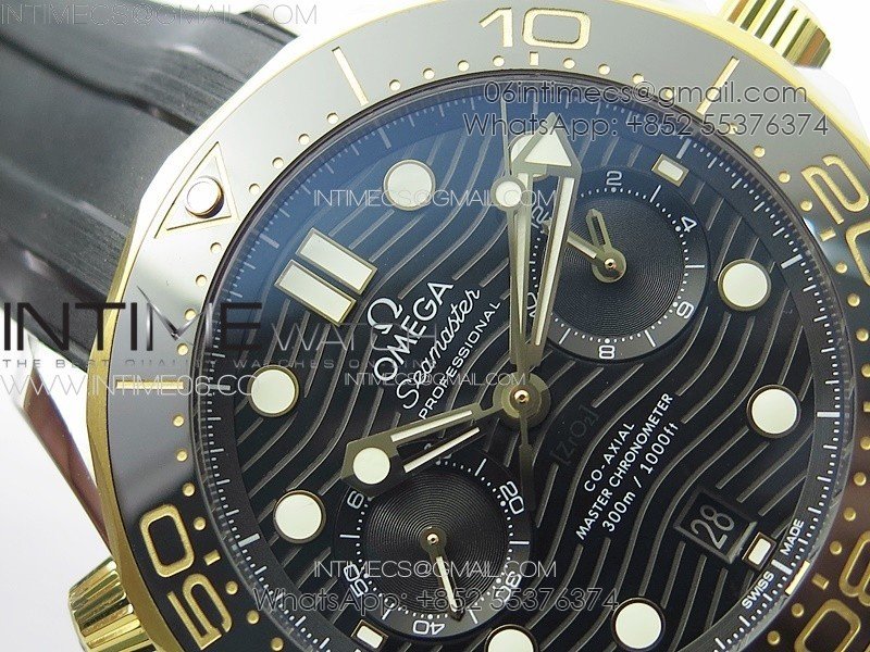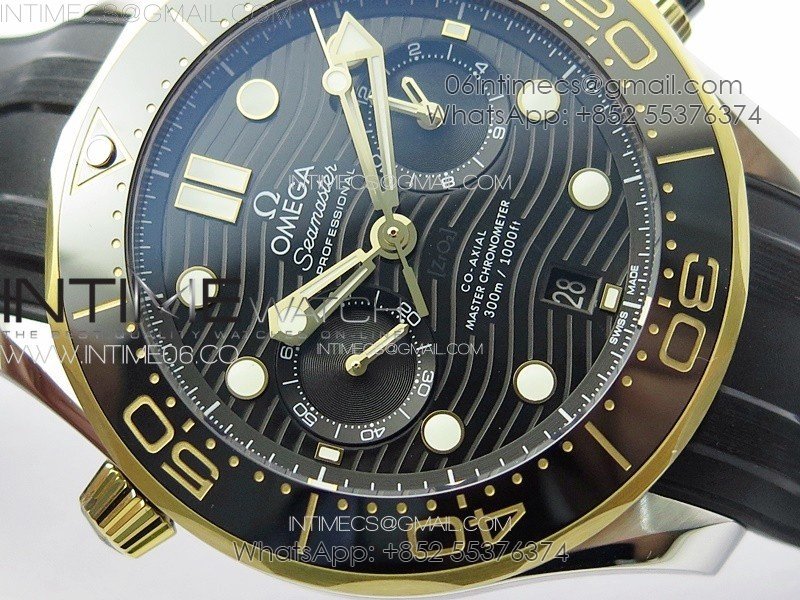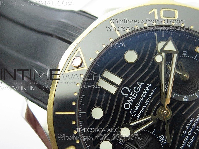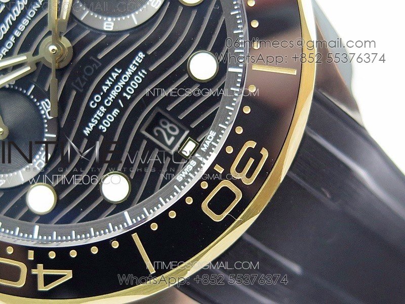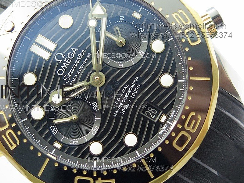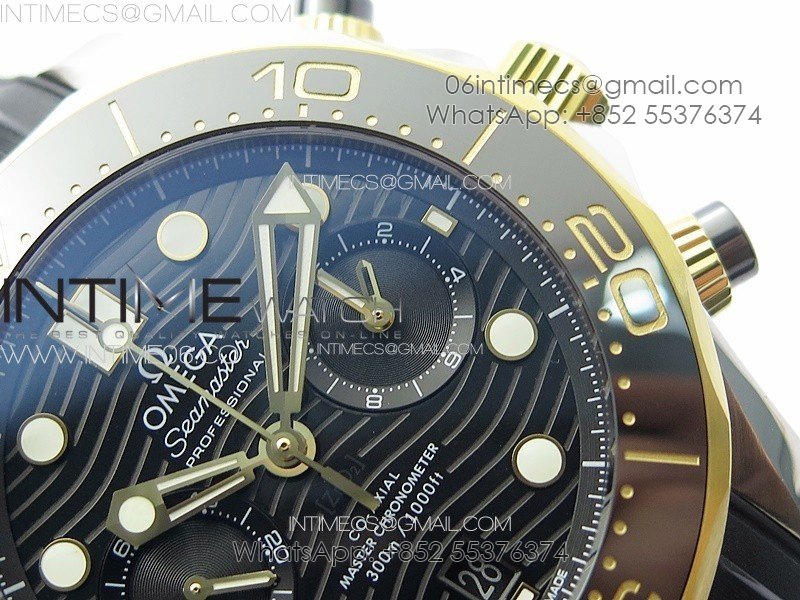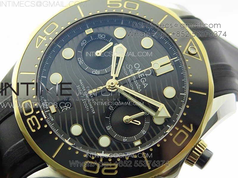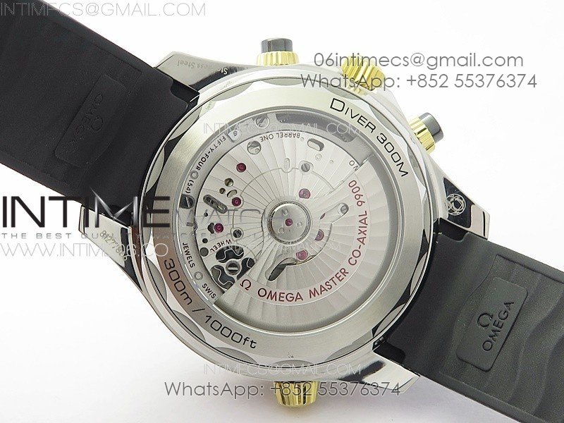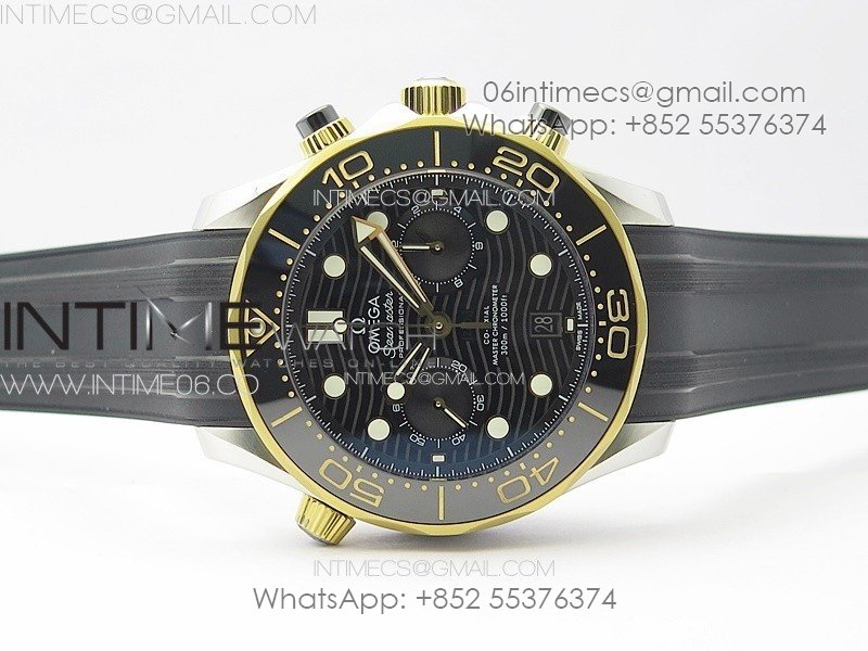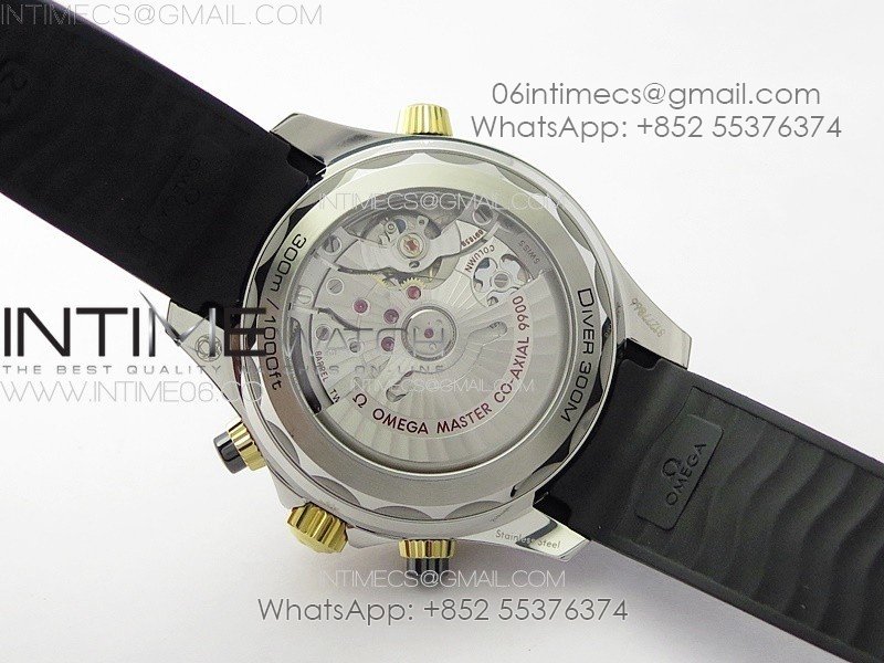 Seamaster 300M Chrono SS/YG OMF 1:1 Best Edition Black Dial on Black Rubber Strap A9900