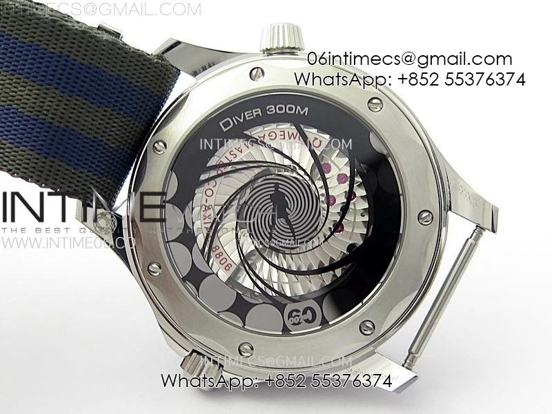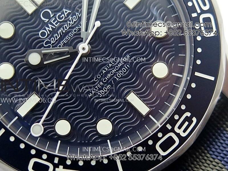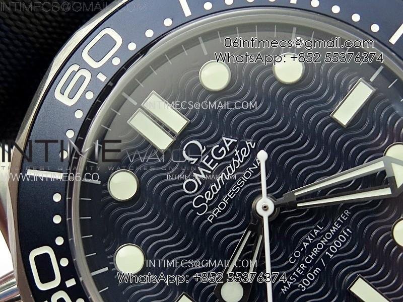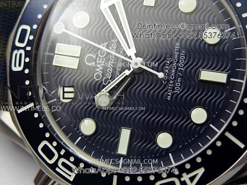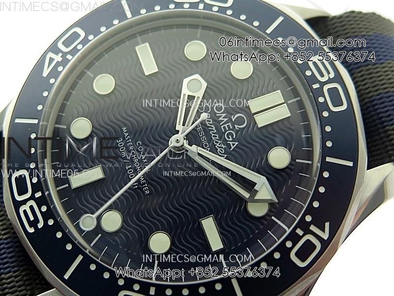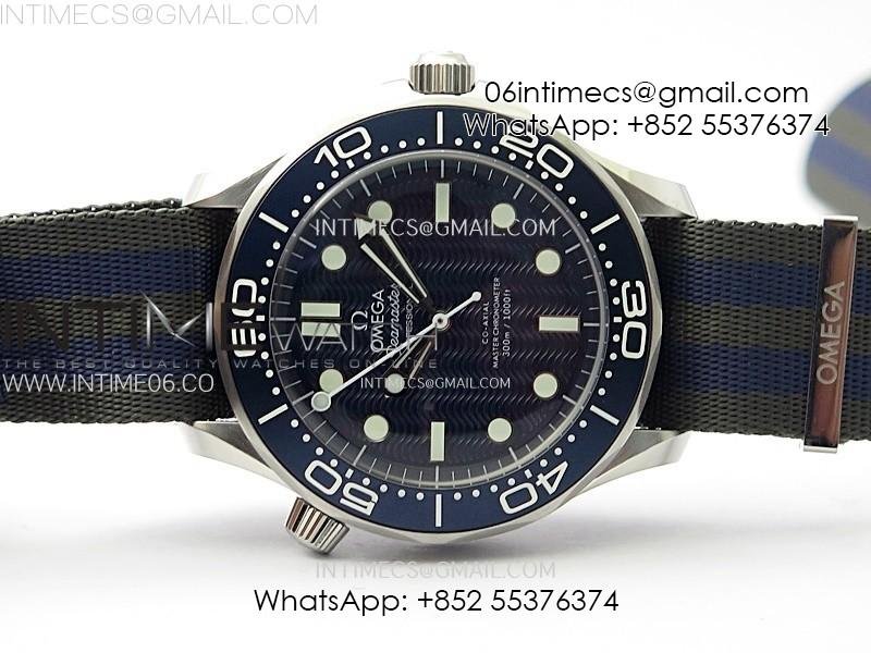 Seamaster Diver 300M 007 B50F Blue Ceramic Blue wave textured Dial on Nylon A8806 (Free SS Bracelet)
