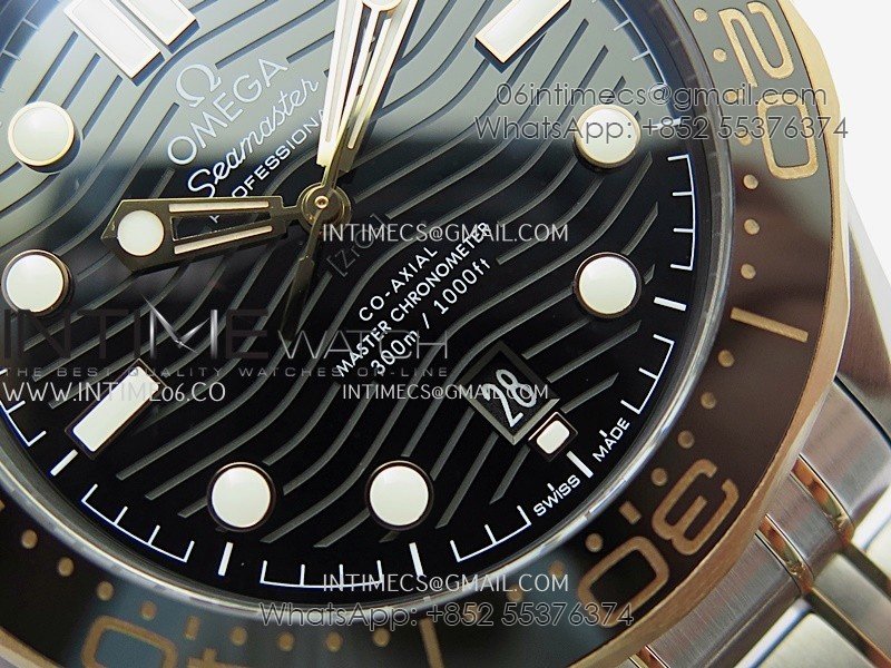 Seamaster Diver 300M Black Ceramic Bezel SS/RG V4 VSF 1:1 Best Edition Green Dial On SS/RG Bracelet Super Clone Asian 8800