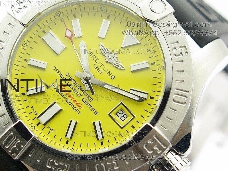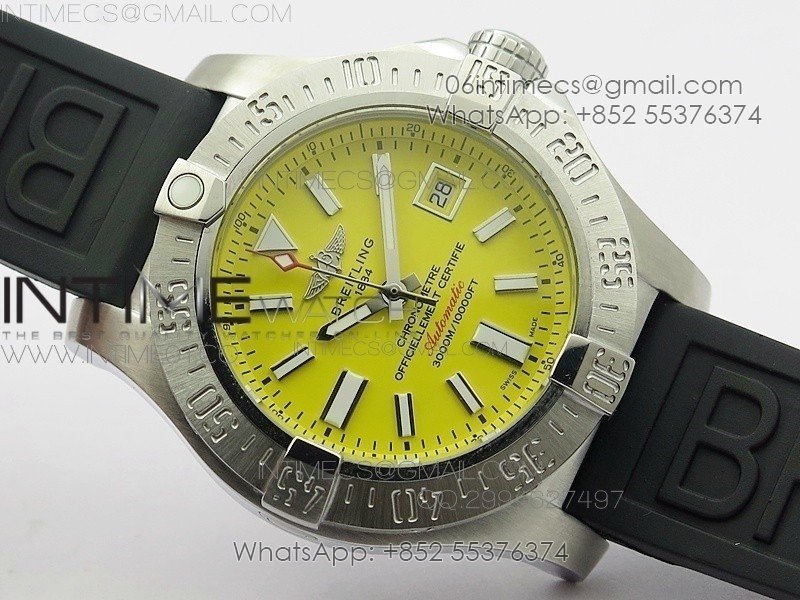 Seawolf SS 1:1 Best Edition SuperLumed Yellow Dial Sticks Markers on Rubber Strap A2824(Super Thick Crystal)