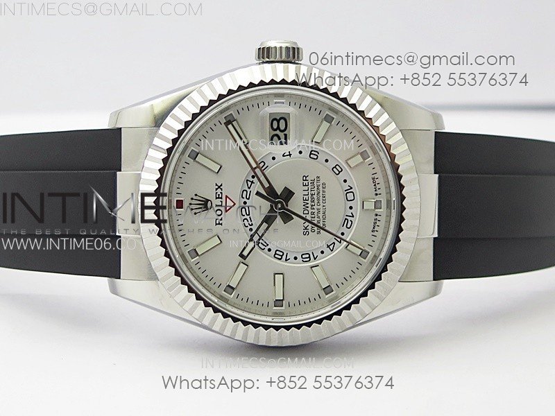 Sky-Dweller 326934 904L SS Noob 1:1 Best Edition White Dial on Black Rubber Strap Asian 23J to 9001