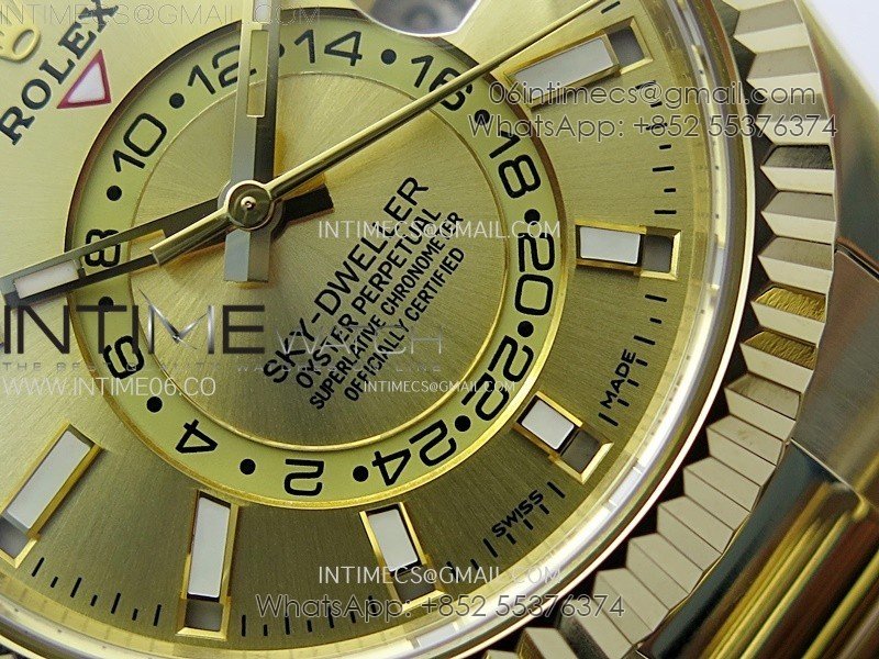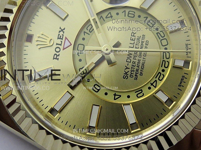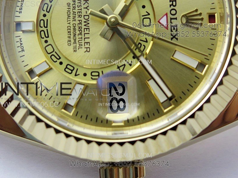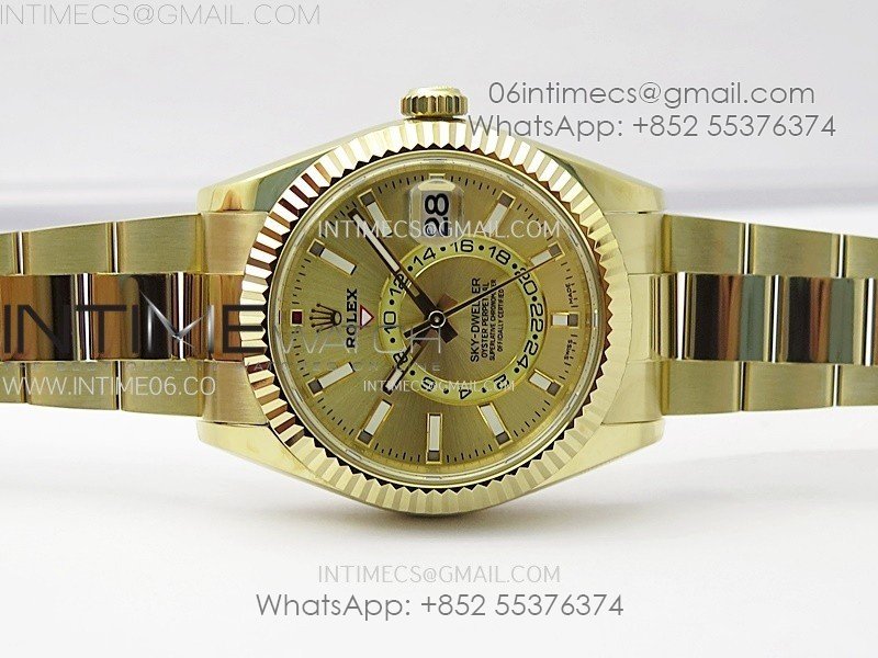 Sky-Dweller 326934 904L YG Noob 1:1 Best Edition Gold Dial on SS Oyster Bracelet Asian 23J to 9001