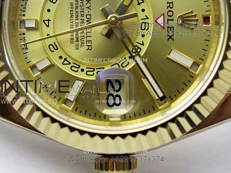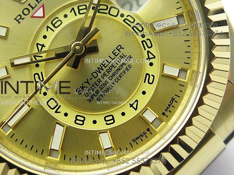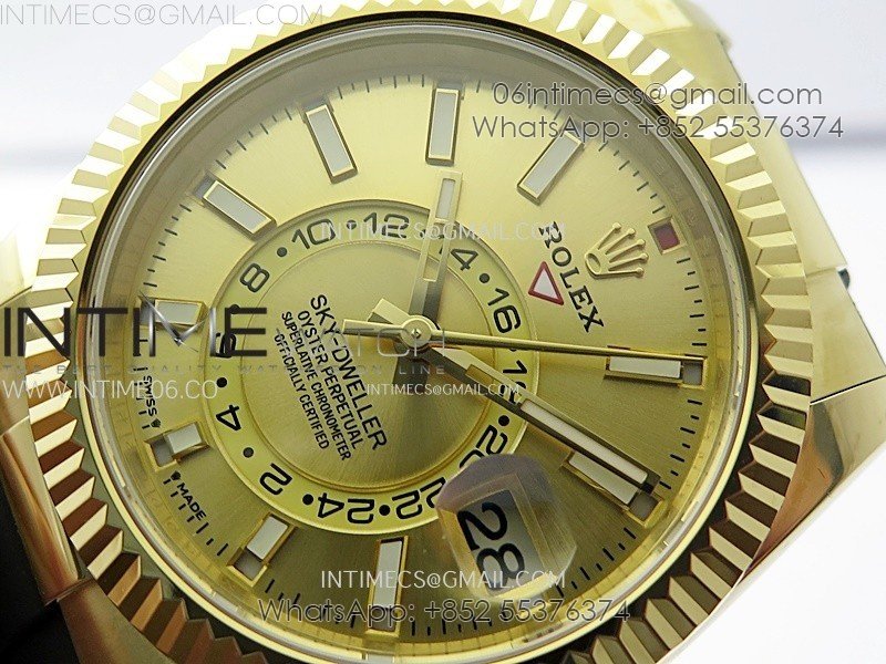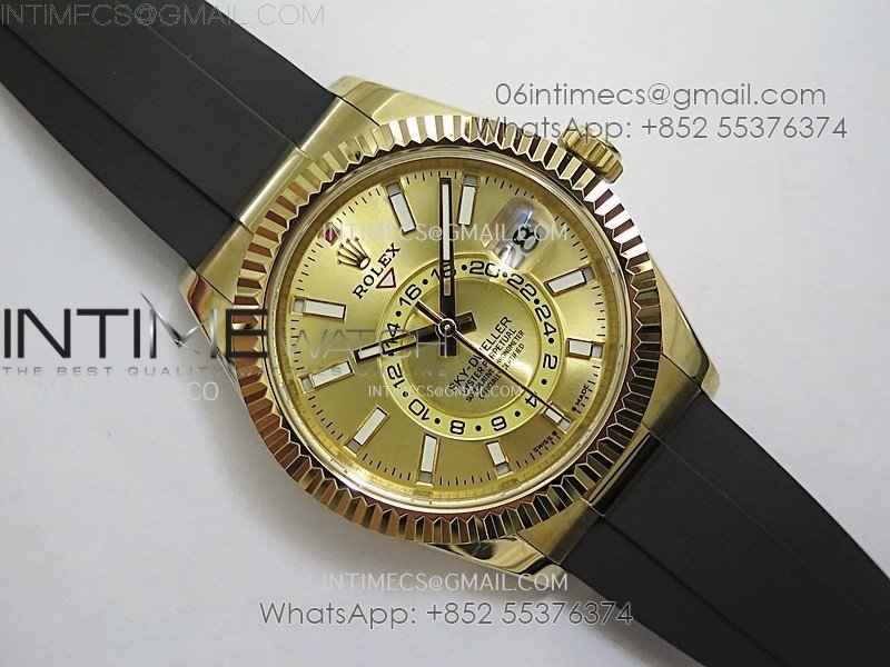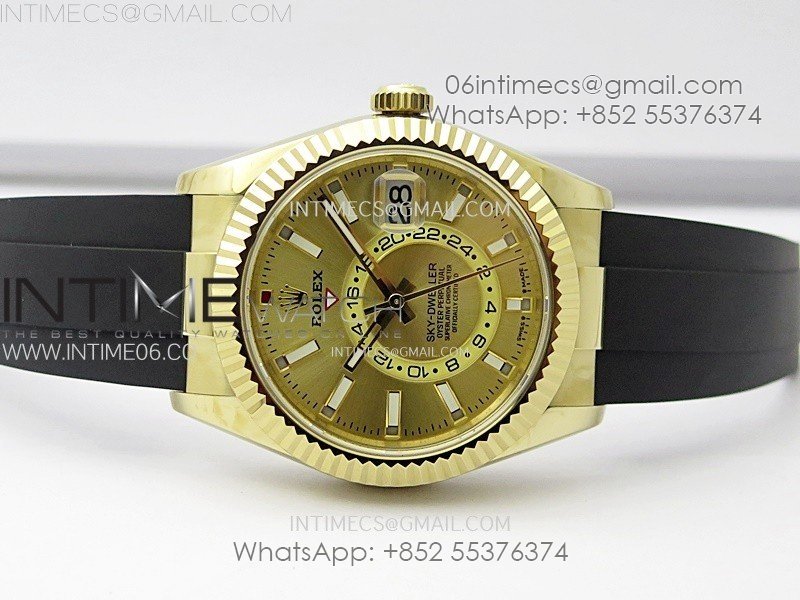 Sky-Dweller 336238 YG Noob 1:1 Best Edition Gold Dial on Black Rubber Strap Asian 23J to 9001
