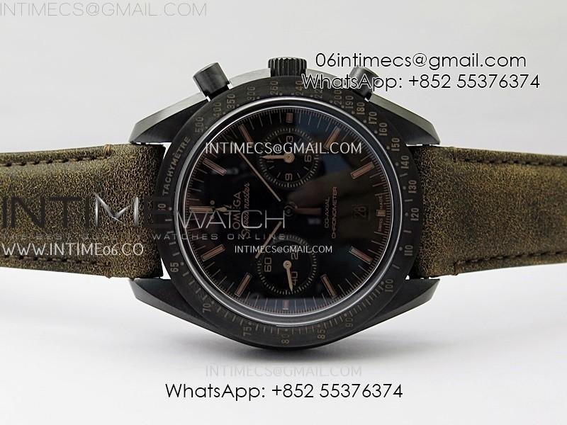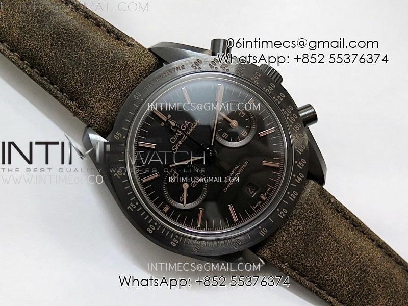 Speedmaster "Dark Side of The Moon" Real Ceramic N1F 1:1 Best Edition Black Dial on Brown Leather Strap A9300